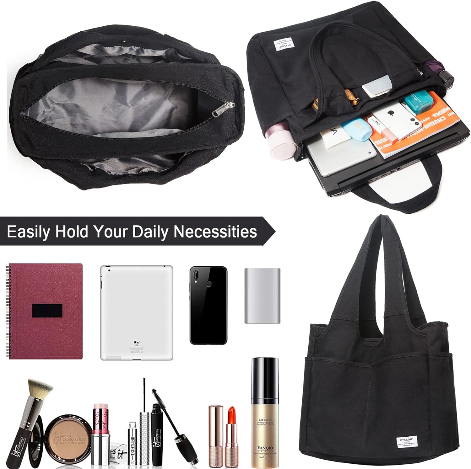 KYALOU Utility Large Tote Bag, Women Casual Shoulder Bags for Work Gym Beach Travel Shopping Grocery College