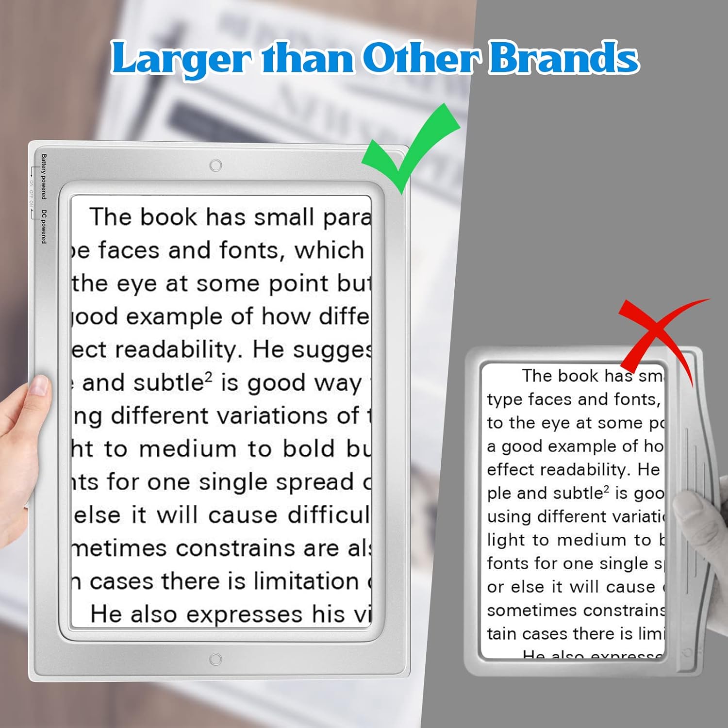 【Optical-Grade Clear Acrylic Sheets】 Made from optical-grade acrylic sheets which are lighter and more shatter-resistant than glass, while providing the same level of clarity. This magnifier can magnify fine prints up to 400% without optical distortion. Perfect for reading books, newspapers, magazines, and more.