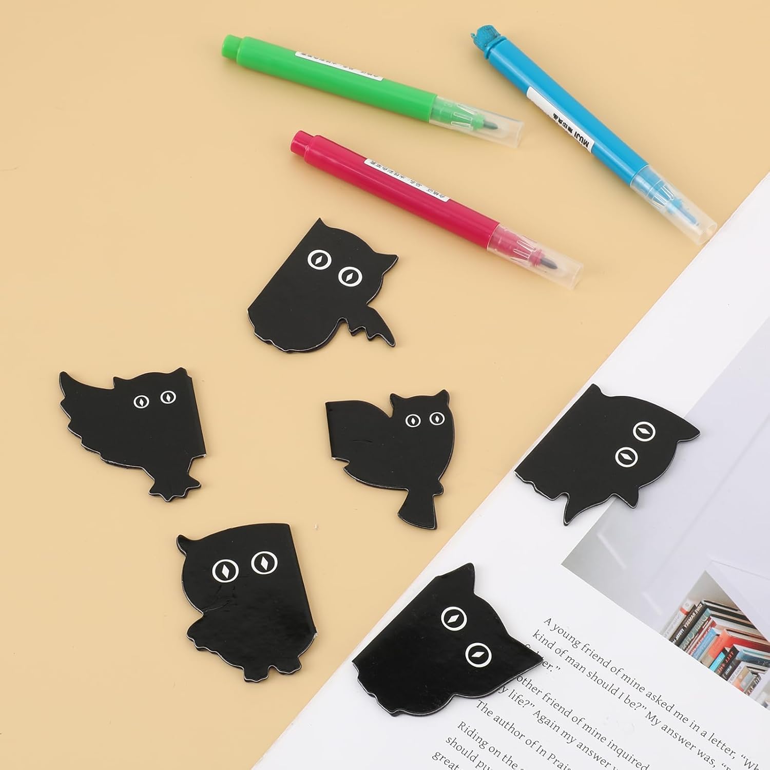 Magnetic Bookmarks for Women, 6 Pieces Assorted Cute Night Owl Book Marks for Reading Unique Bookmarks Kawaii Black Book Markers Clip Gifts for Teachers, Students, Book Lover, Printing on 2 Side