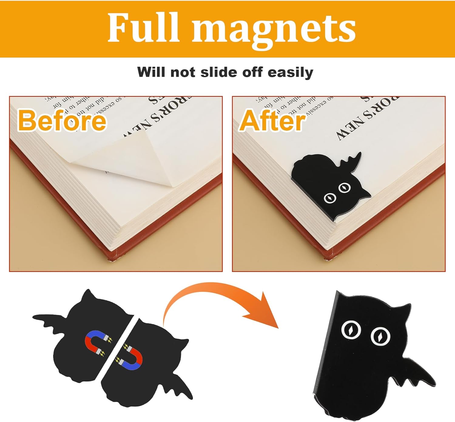 EASY TO USE – Each cute bookmarks is light in weight, easy to carry and store, you just need to put it on the page you want to mark and fold the magnets together when using it, it will not fall off the book easily, and bring you a good user experience.