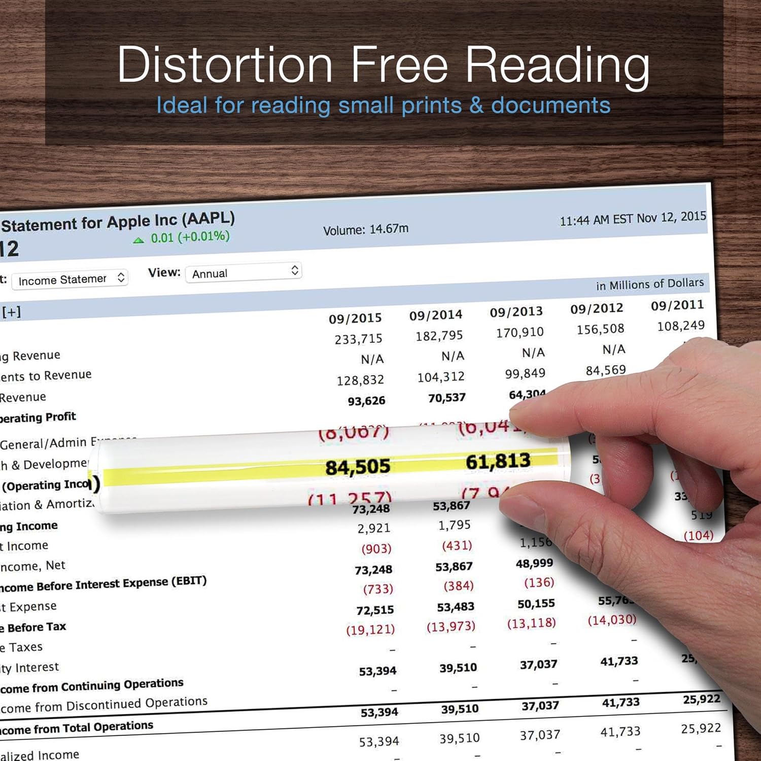 Lay the Magnifier Bar on your reading material for instant crystal-clear viewing.