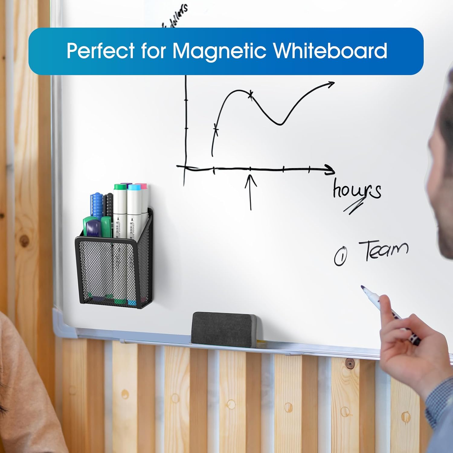 MaxGear Magnetic Pen Holder, 2 Pack Mesh Pencil Holder for Desk Storage Basket Organizer Marker Holder – Extra Strong Magnets Perfect for Locker Accessories, Refrigerator, Whiteboard, School Office