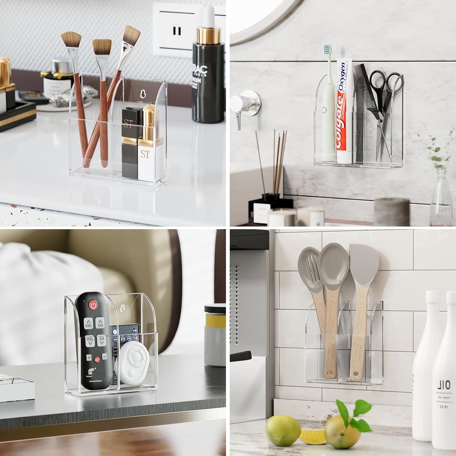 2 WAYS TO INSTALL–Besides simply placing the marker caddy on the desk, you have 2 options to mount it on the wall. You could use tape to adhere to this acrylic organizer on the wall. The other way is to use more stable screws, to hang it up.