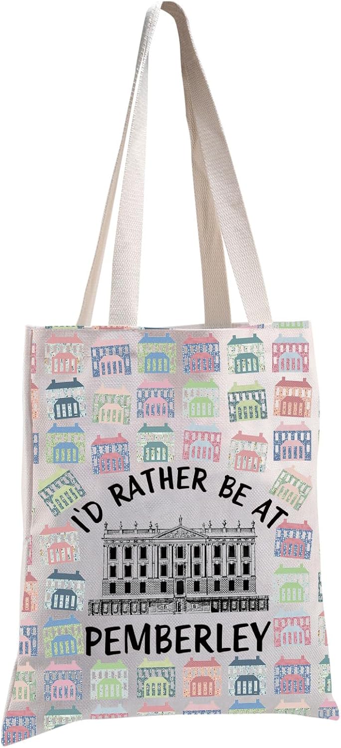MBMSO Pemberley Gift Jane Tote Bag Pride Prejudice Book Lover Gift I’d Rather Be at Pemberley Tote Bag Literary Bookworm Gift