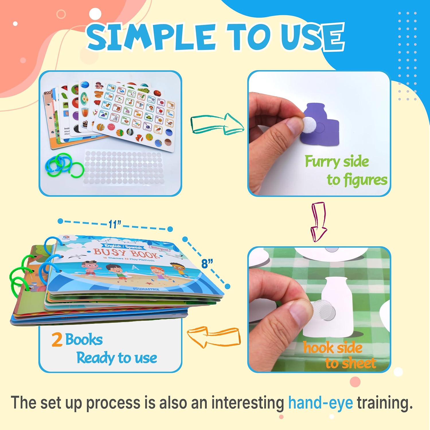 Bilingual: This busy book features 160 stickers with English and Spanish text, making it perfect for bilingual education. Designed with Montessori principles in mind, it promotes hands-on learning and sensory exploration.