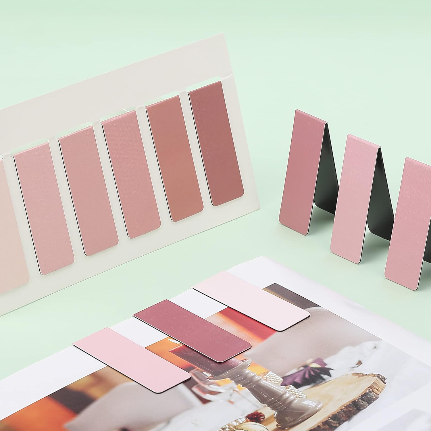This package includes 12 magnetic bookmarks in 12 beautiful boho pink shades, perfect for adding an artistic and stylish flair to your books.