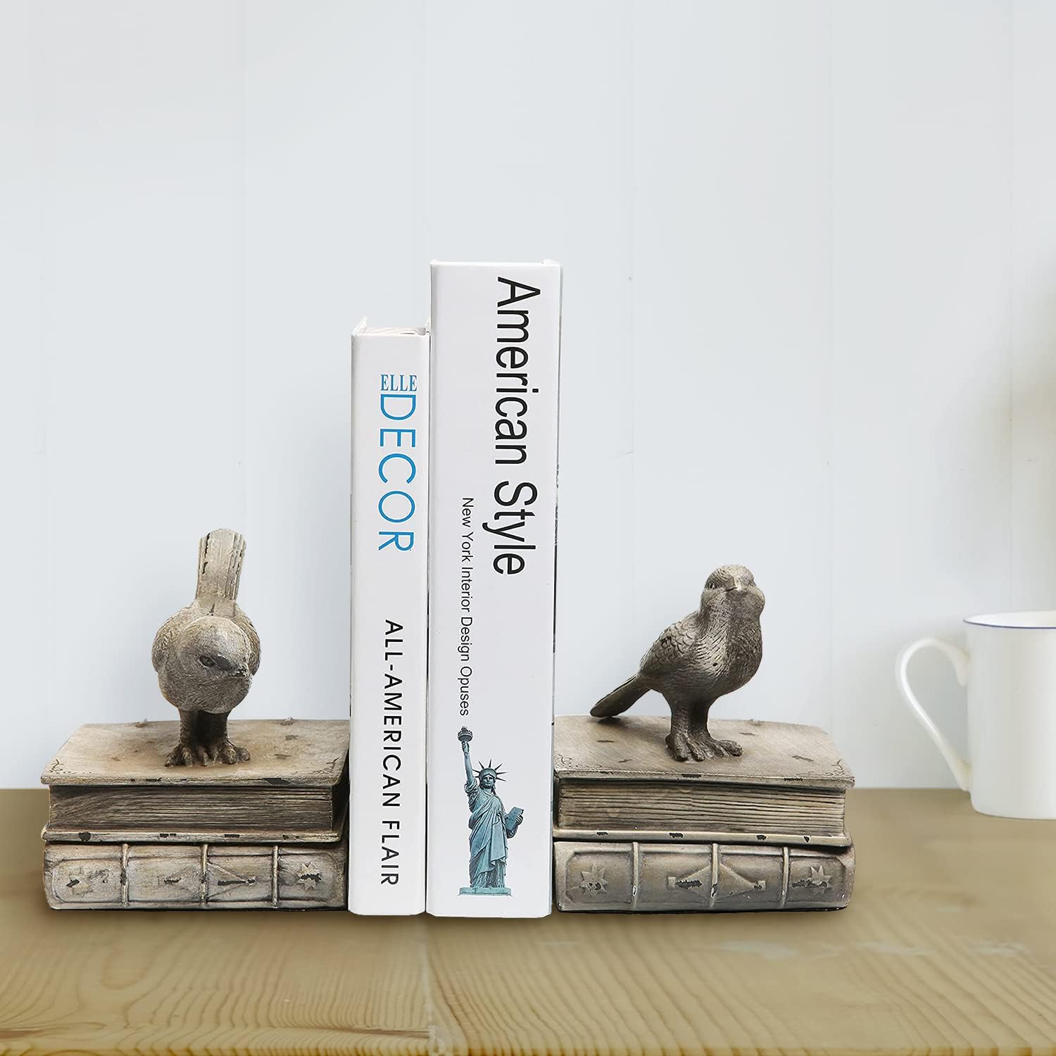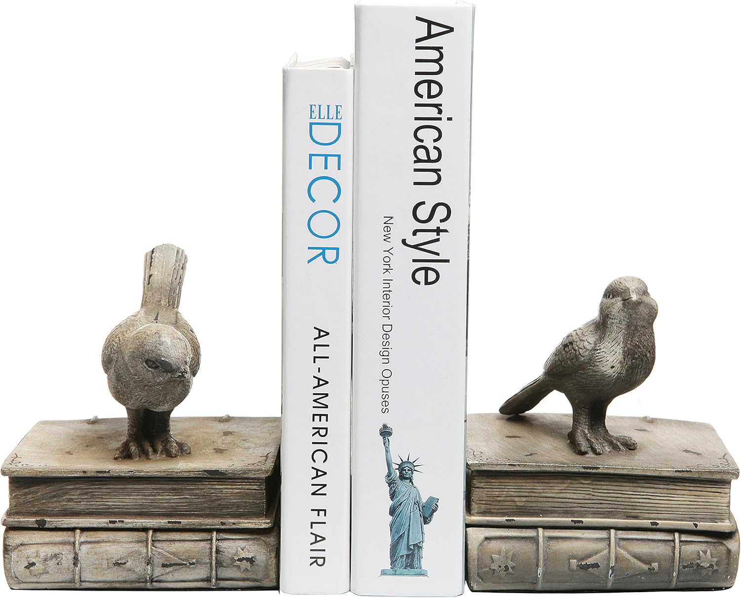Featuring the design of perched birds atop stacked books and a vintage white finish, this set of 2 bookends can make a sturdy base for holding books and also make for a great decorative centerpiece for your table. It will be a great gift to readers and kids, who will be impressed by this gift and like the way to organize books.
