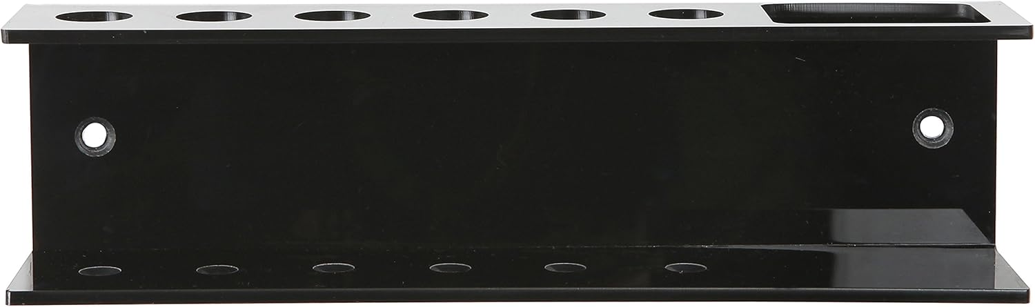 Save space, stay organized, and add a decorative touch with this 6 marker and eraser holder. The convenient rack is made of deluxe crystal clear acrylic and is ideal for home, school, or office use. Set this convenient supplies caddy on your desk, or attach to the wall by your whiteboard, and you’ll have just what you need for a productive presentation or jotting down notes.**USPTO Patent Pending** Markers and eraser not included..Fits 6 standard size dry erase markers and eraser.Approximate Dimensions (in inches): 11 W X 3.25 H X 2.25 D.