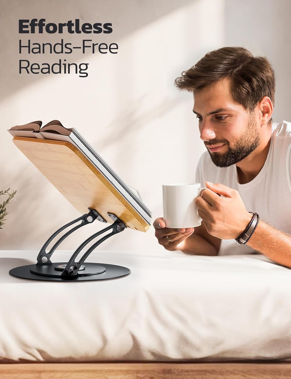 Comfortable Reading Experience: Tailor your reading angle and height effortlessly with this ergonomic book holder, to enjoy a comfortable hands-free reading experience. The book stand for reading is designed to alleviate neck, shoulder, and back strain, transforms your reading sessions into a serene, hands-free journey of relaxation and ease.