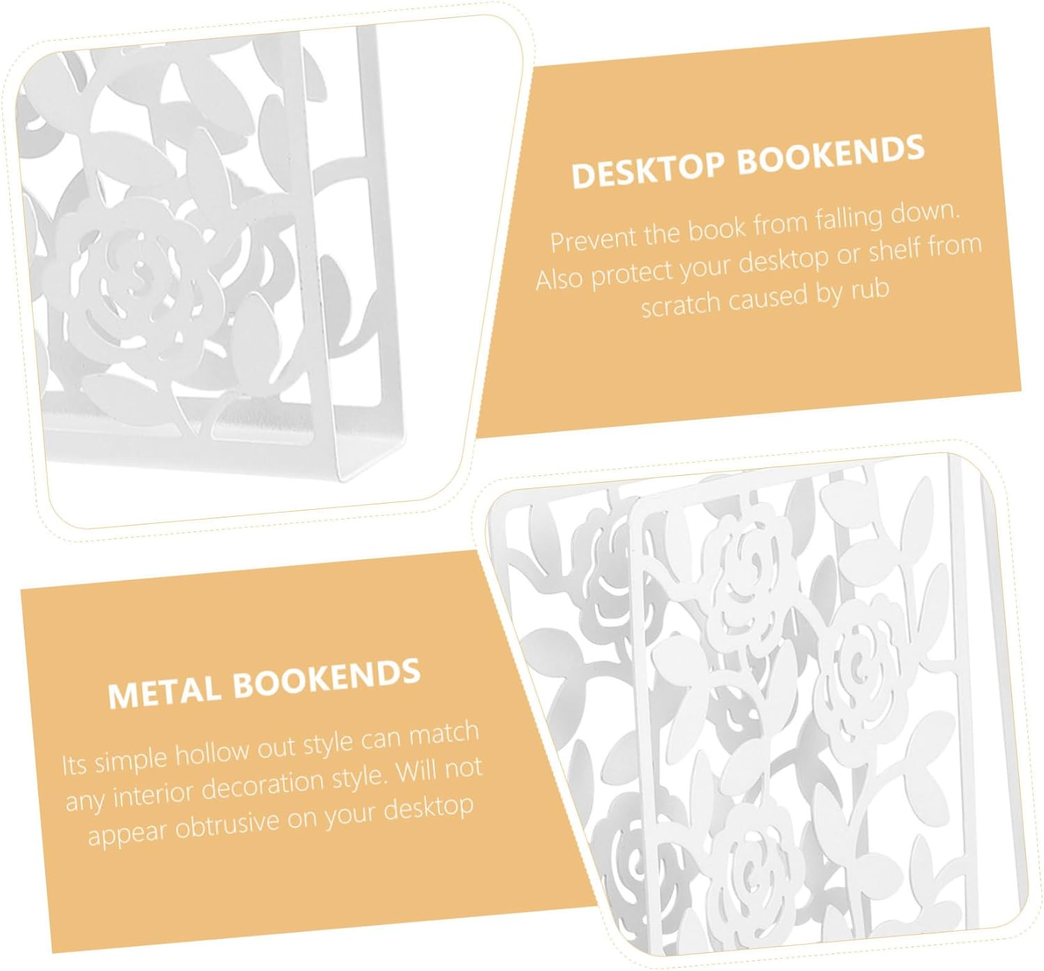 NUOBESTY 2pcs Book Stand Book Holder for Desk End Book Display Stand Book Storage Adjustable Holders Bookshelf for Desk Shelf Book Support Desktop Stand Hollow Out Book Stoppers White Iron