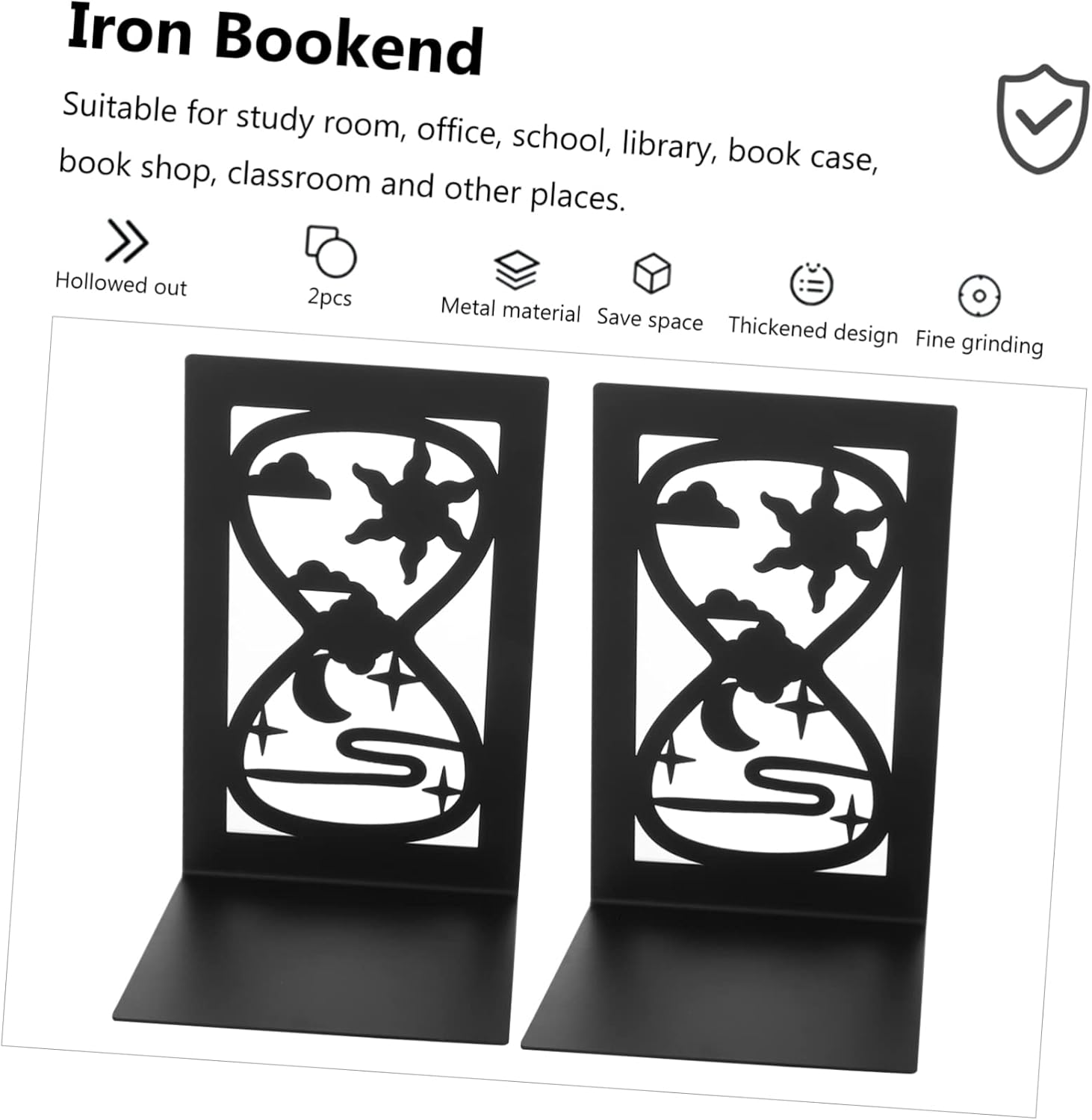 – Size: 17.50X11.00X10.00cm/6.88X4.32X3.93 inch Hollow Hourglass Design Bookends.
