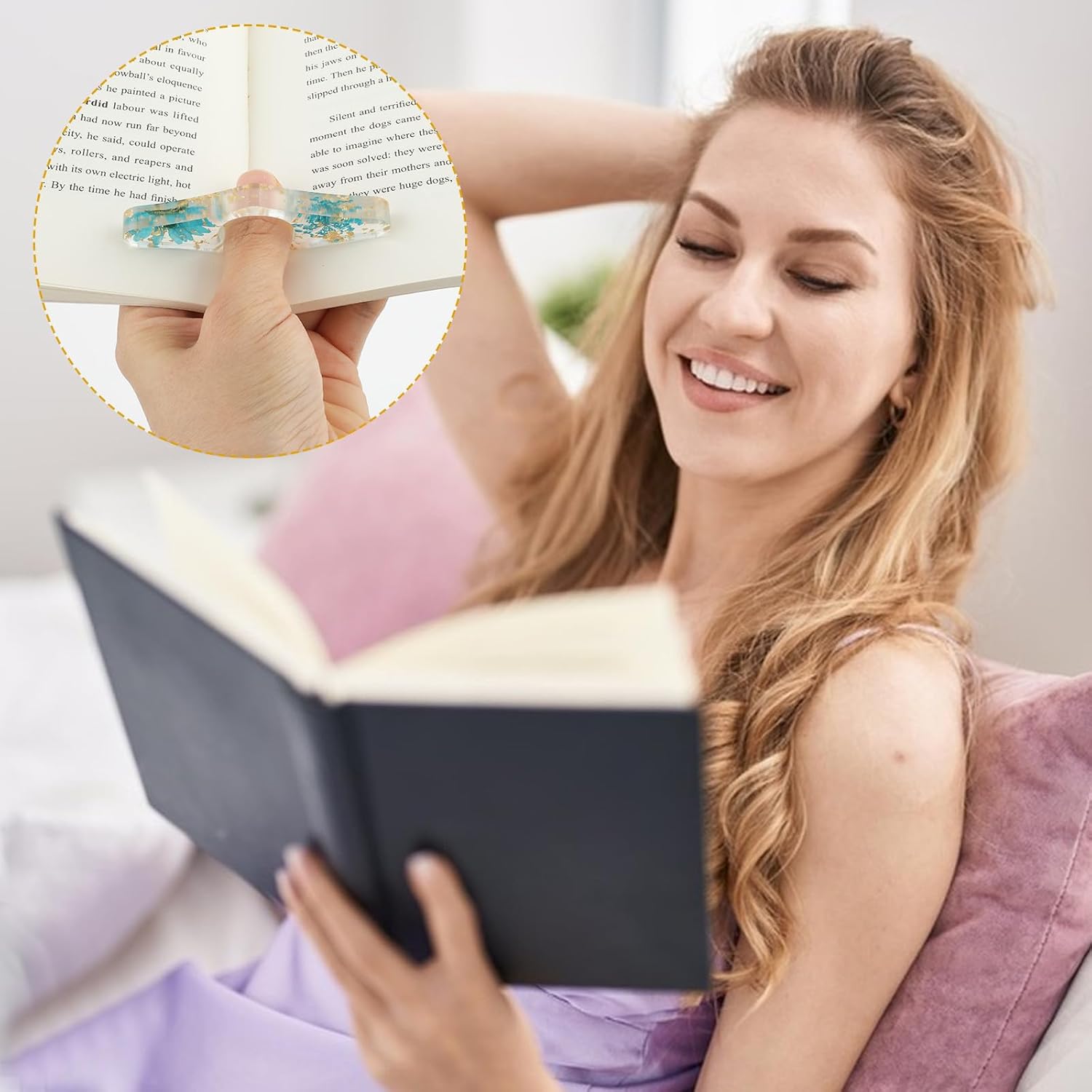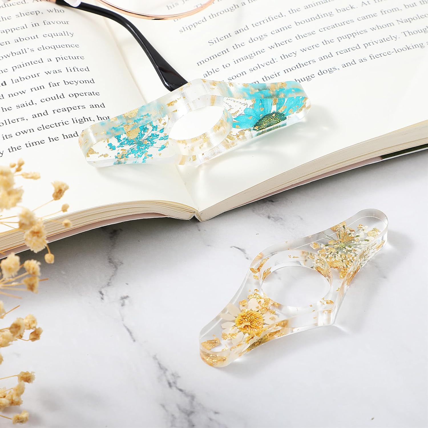 Ouligay 2Pcs Thumb Book Page Holder, Dried Flower Resin Book Holders for Reading, Book Finger Holder, Transparent Floral Book Opener Holder Bookmark, Reading Book Accessories Gifts for Book Lovers