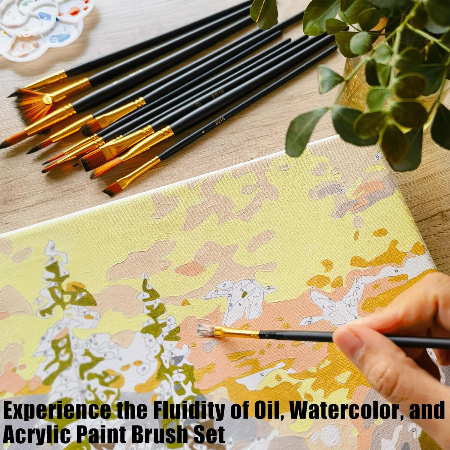 Paint Brushes,Artist Paint Brush Set of 12,Professional Art Painting Brush for Acrylic Painting,Oil,Watercolor,Include Pointed Rounds,Fan,Flat Assorted Shapes,Great for Kids Adult(Black)