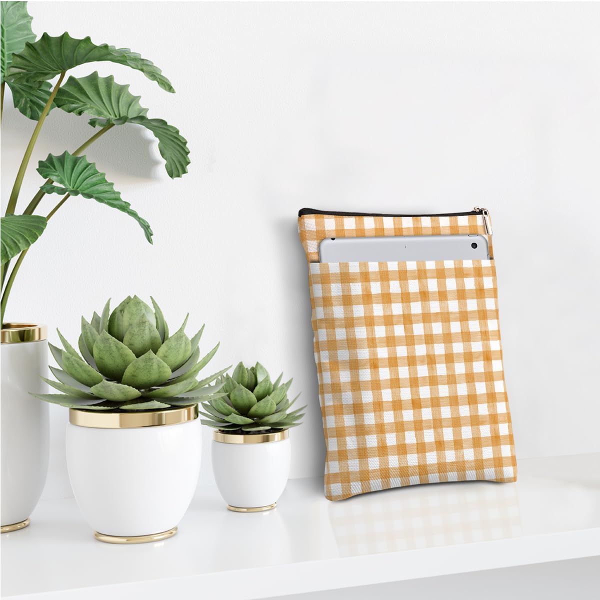 Preppy Checkered Yellow Book Sleeve Book Lovers Gifts Gingham Waterproof Book Cover Book Accessories Book Covers for Paperbacks Book Pouch Book Protector with Front Pocket for Women Girls Niece