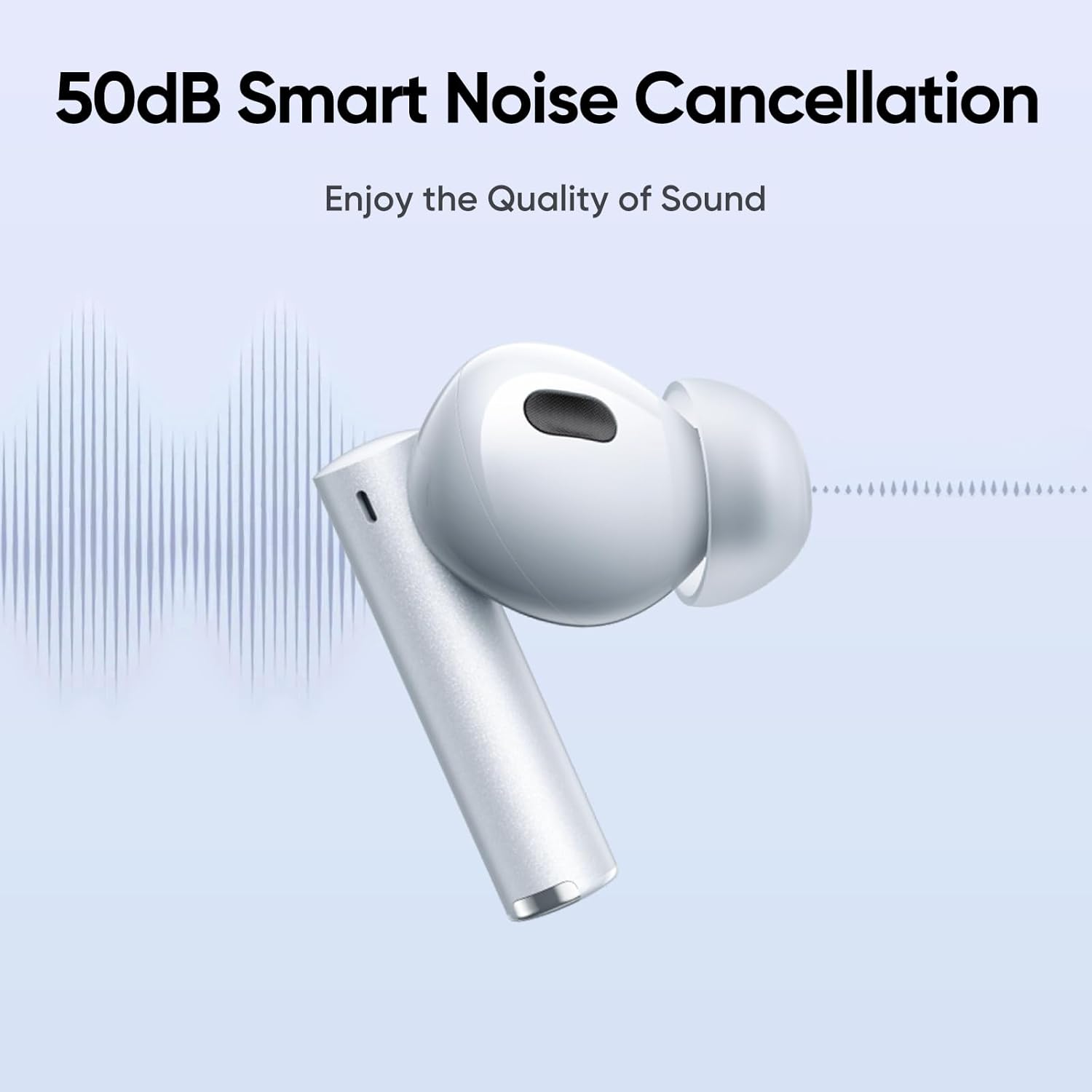 realme Air 6 Pro True Wireless Earbuds, 50dB Noise Reduction, Adaptive Noise Cancelling to Ears and Environment, Hi-Res Sound, LDAC, 3D Audio, 40H Battery, Wireless Charging, Bluetooth 5.3, Silver