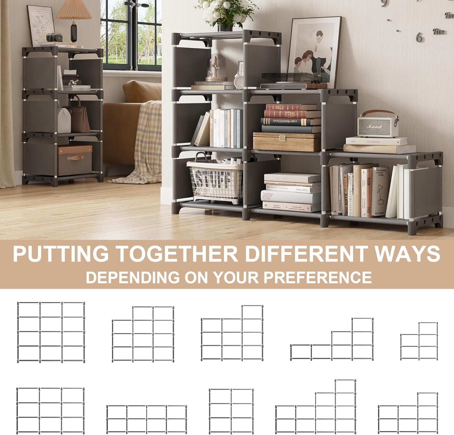 【Easy To Assemble】The bookshelf can easy installation, simple structure, parts can be repeated disassembly use. Checking if every sheet is fully locked in the connector after finishing every layer assembling, then you shall get a firm storage organizer. We have 12/18-grids black/grey cube organizer for you to choose