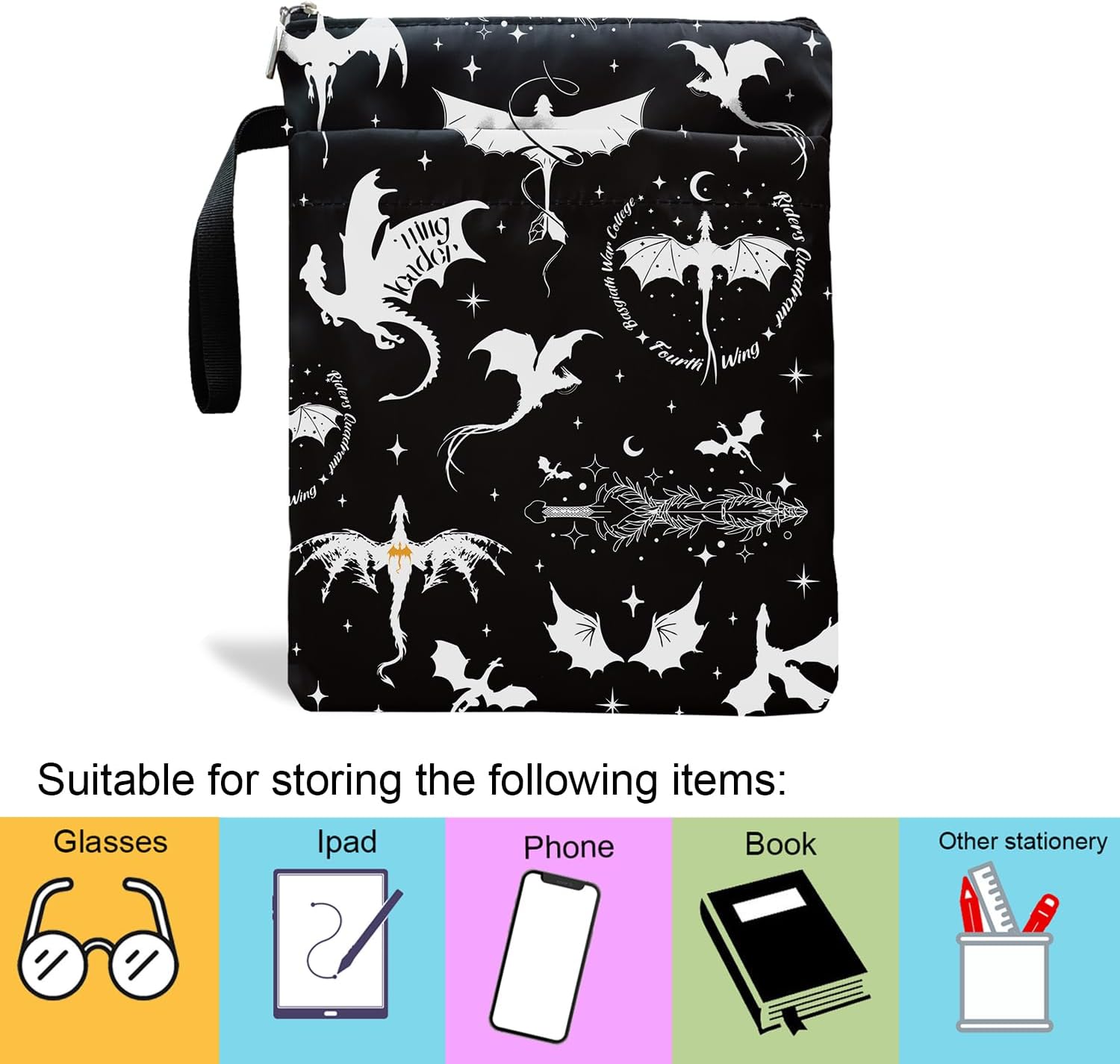 Romantasy Dark Academia Dragons Book Sleeve, Fantasy Novel Reader Gift, Bookish Gifts, Book Inspired Gift, Paperback Book Protector Book Cover Dragons Lovers Book Gifts (Basgiath War College-Black)