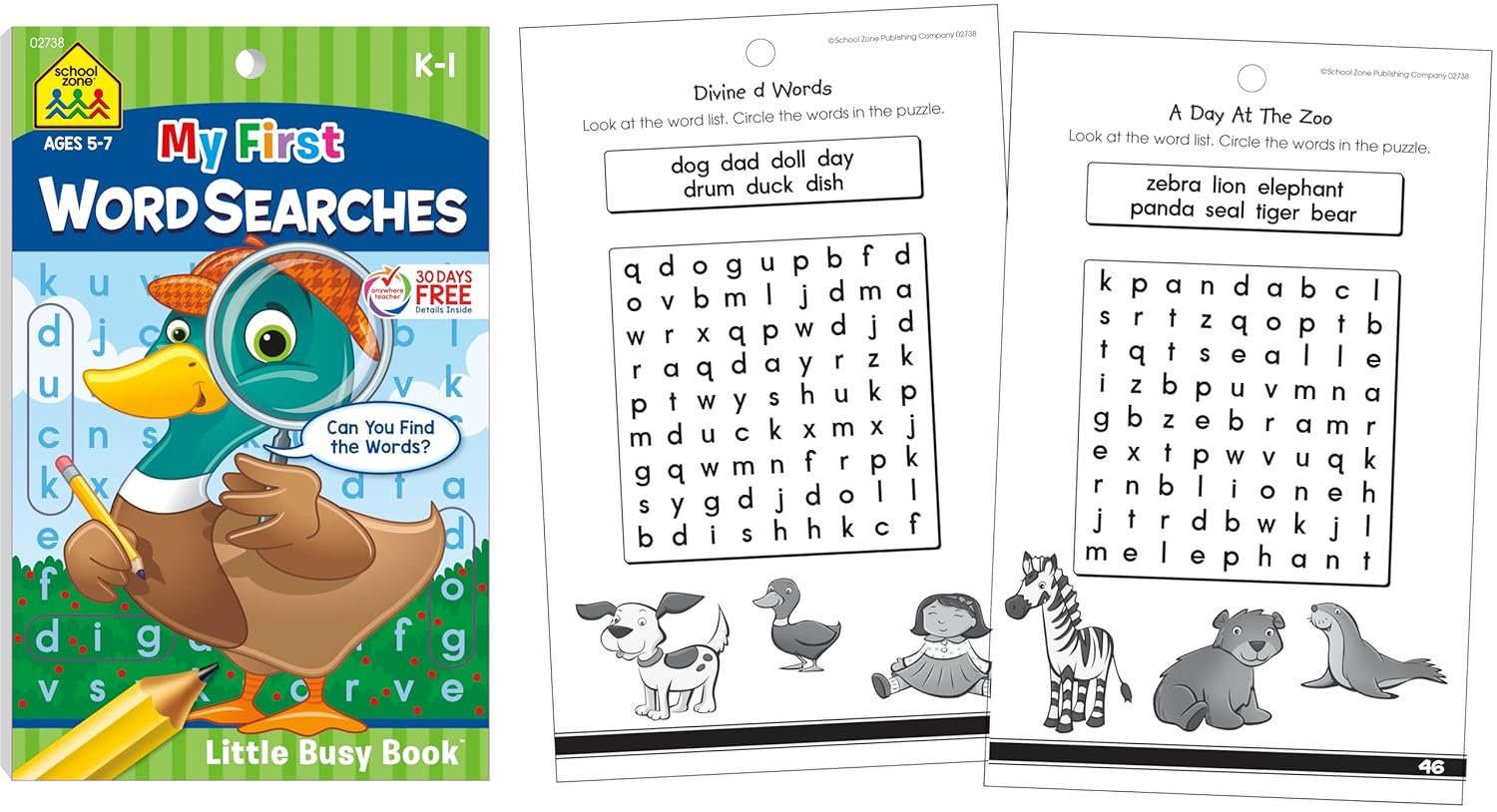 School Zone – My First Activities On-the-Go! 6-Pack Workbook Set – Ages 4+, Preschool to 2nd Grade, Dot-to-Dot, Hidden Pictures, Mazes, Coloring, and More (School Zone Little Busy Book™ Series)