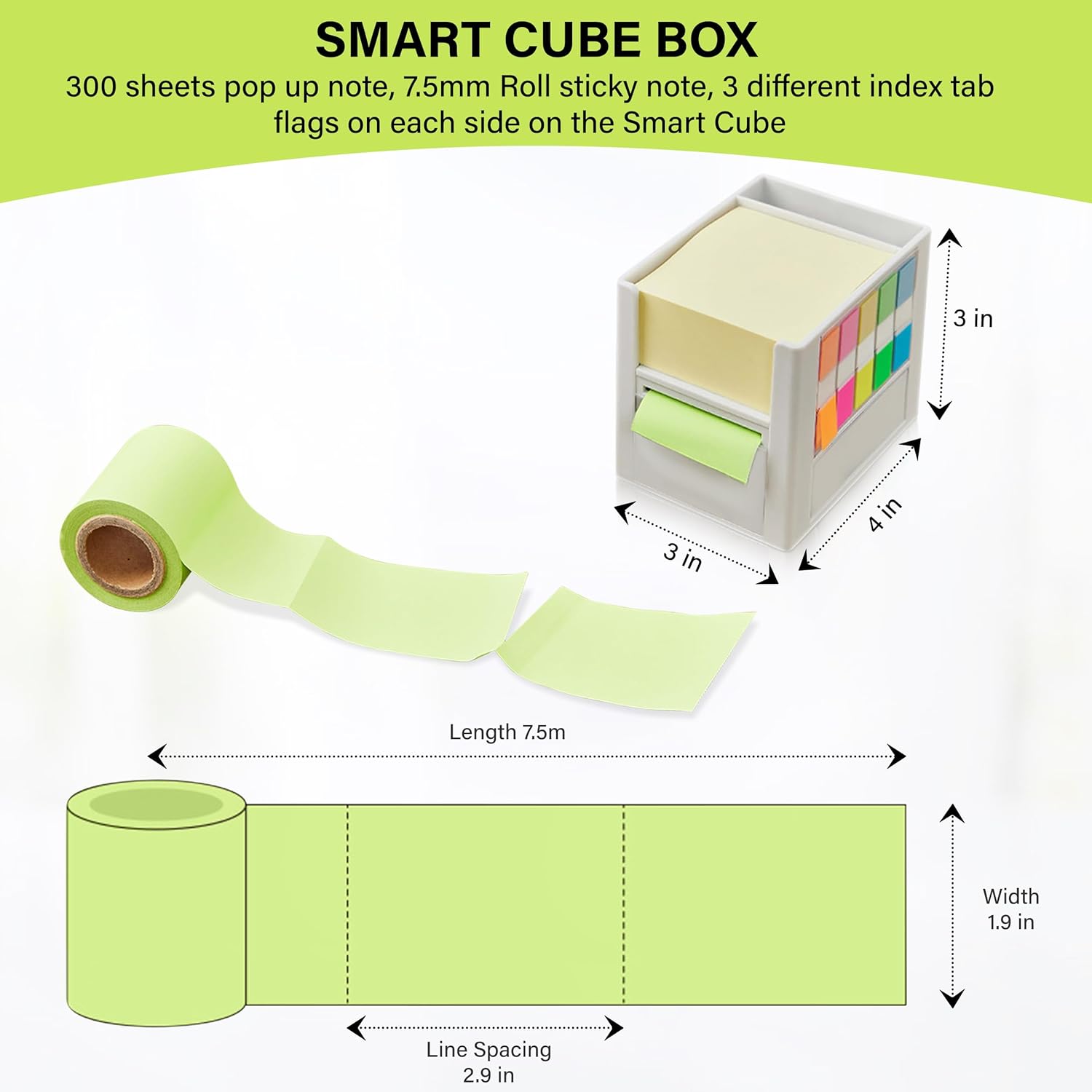 [Office supplies for desk] Smart desk organizer and office accessories, 2.5 x 3 size 300 sticky notes, 7.5mm Roll sticky note, 3 different index tab flags on each side