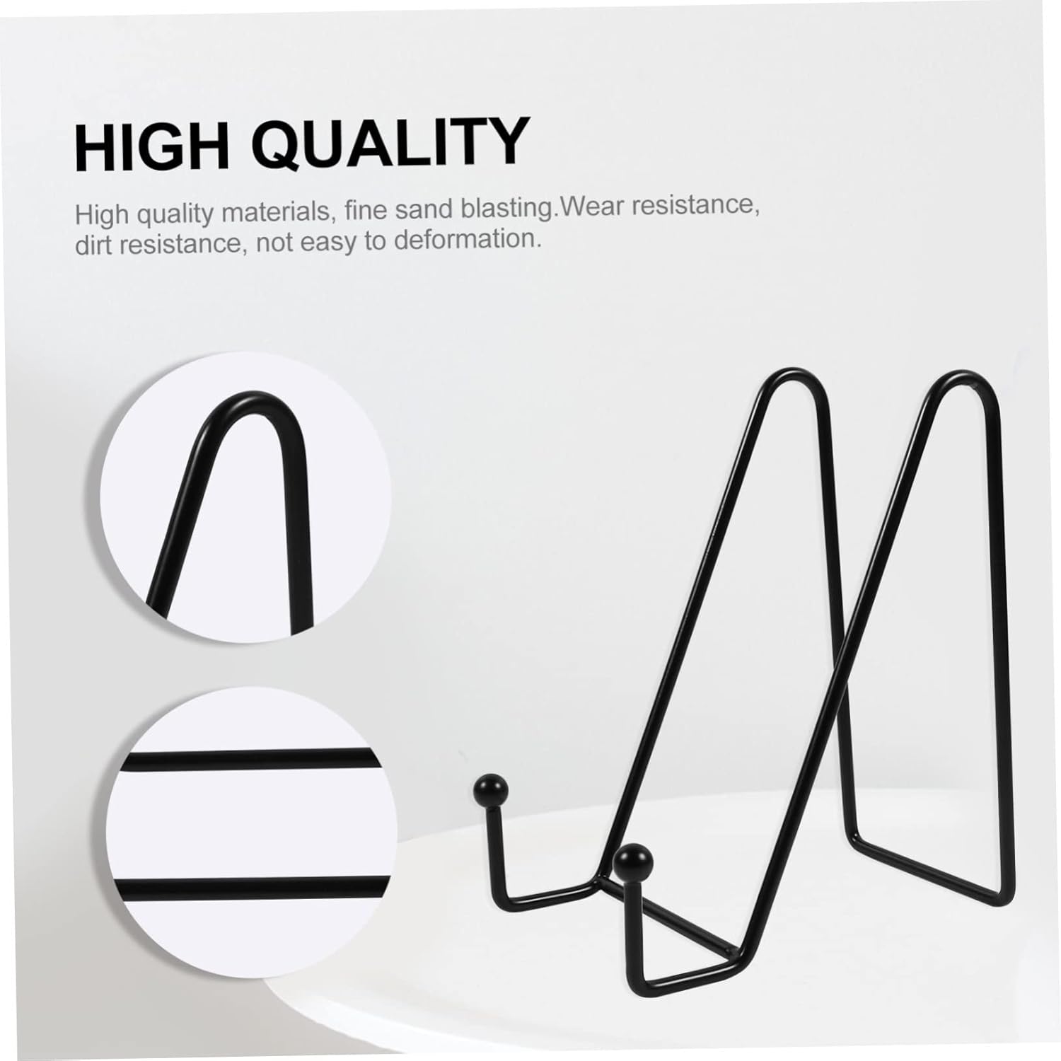 SEWACC 1set Display Stand Picture Holder Picture Frame Holder Stand Book Shelf Cord Holders Creative Plate Display Rack Wire Platter Stand Photo Holding Rack Dish Holder Metal Black 2pcs
