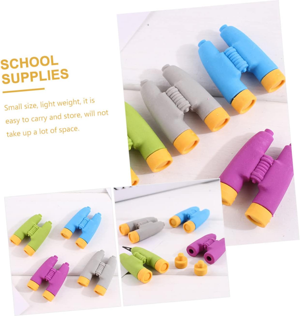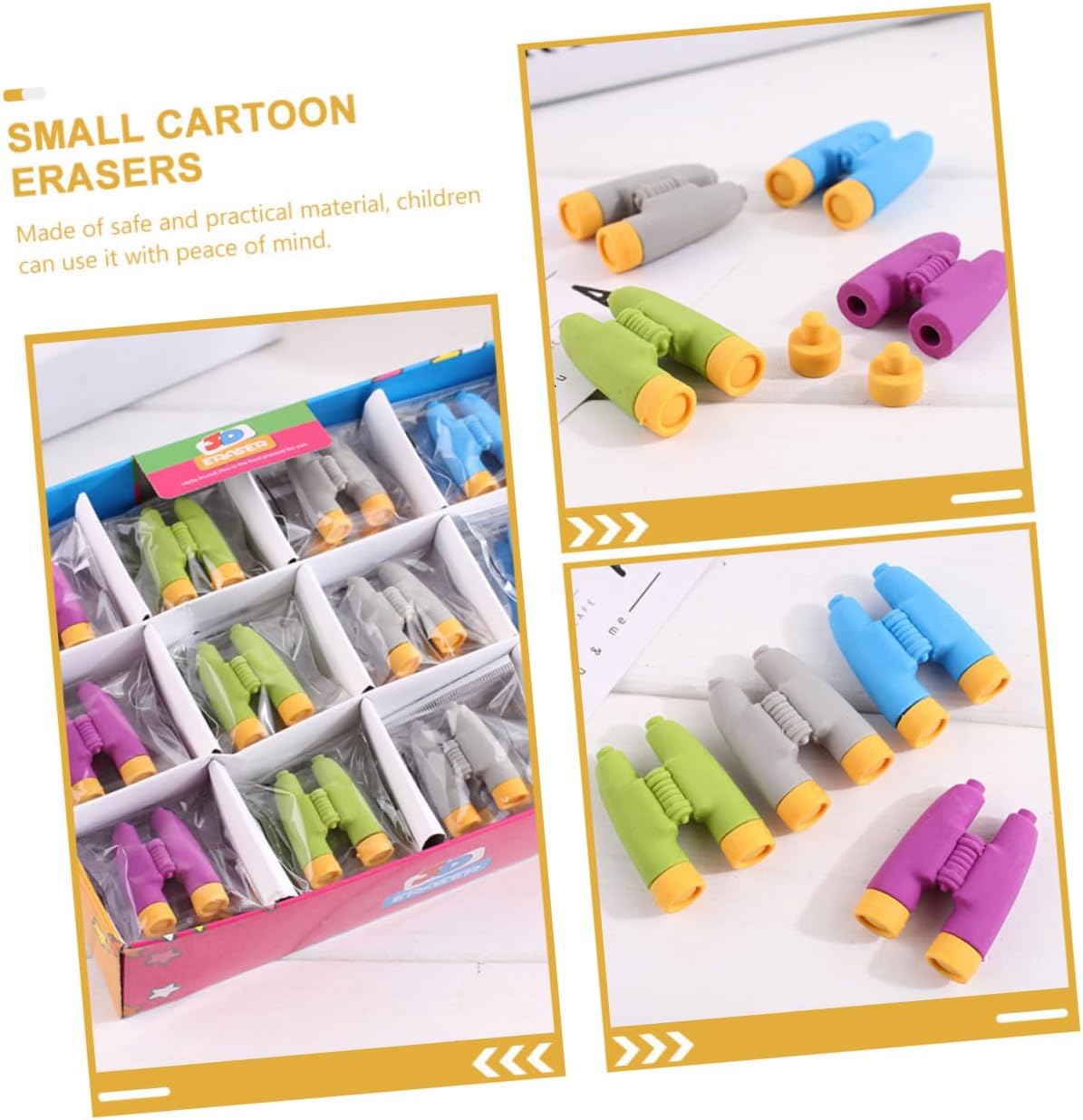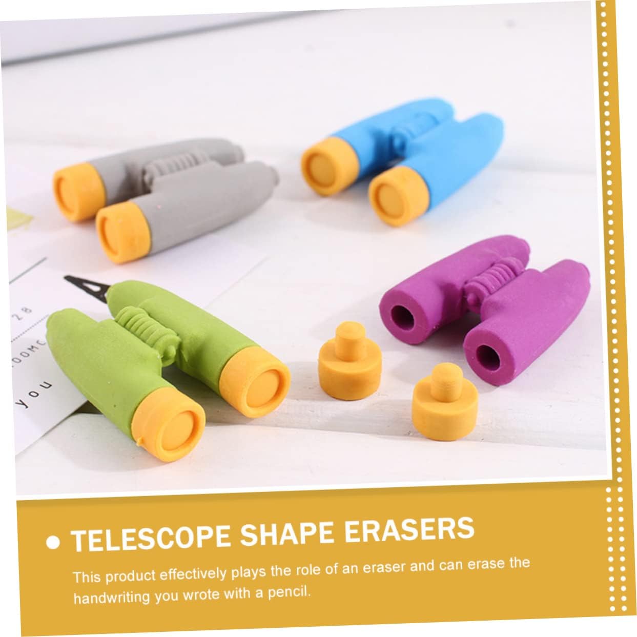 Vivid telescope erasers:these telescope shape erasers are easy to carry, light in weight, and easy to use and carry,cartoon pencils erasers