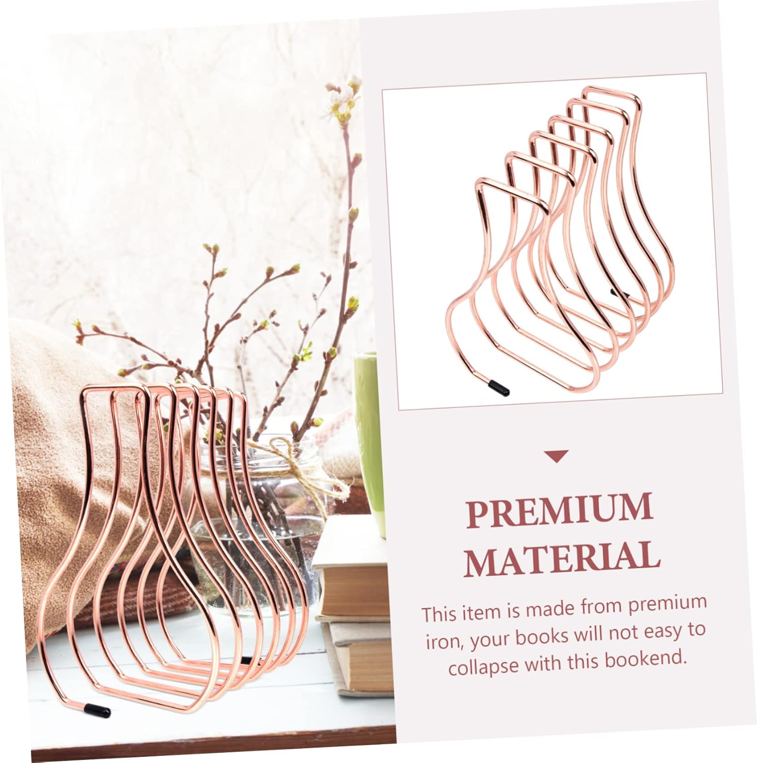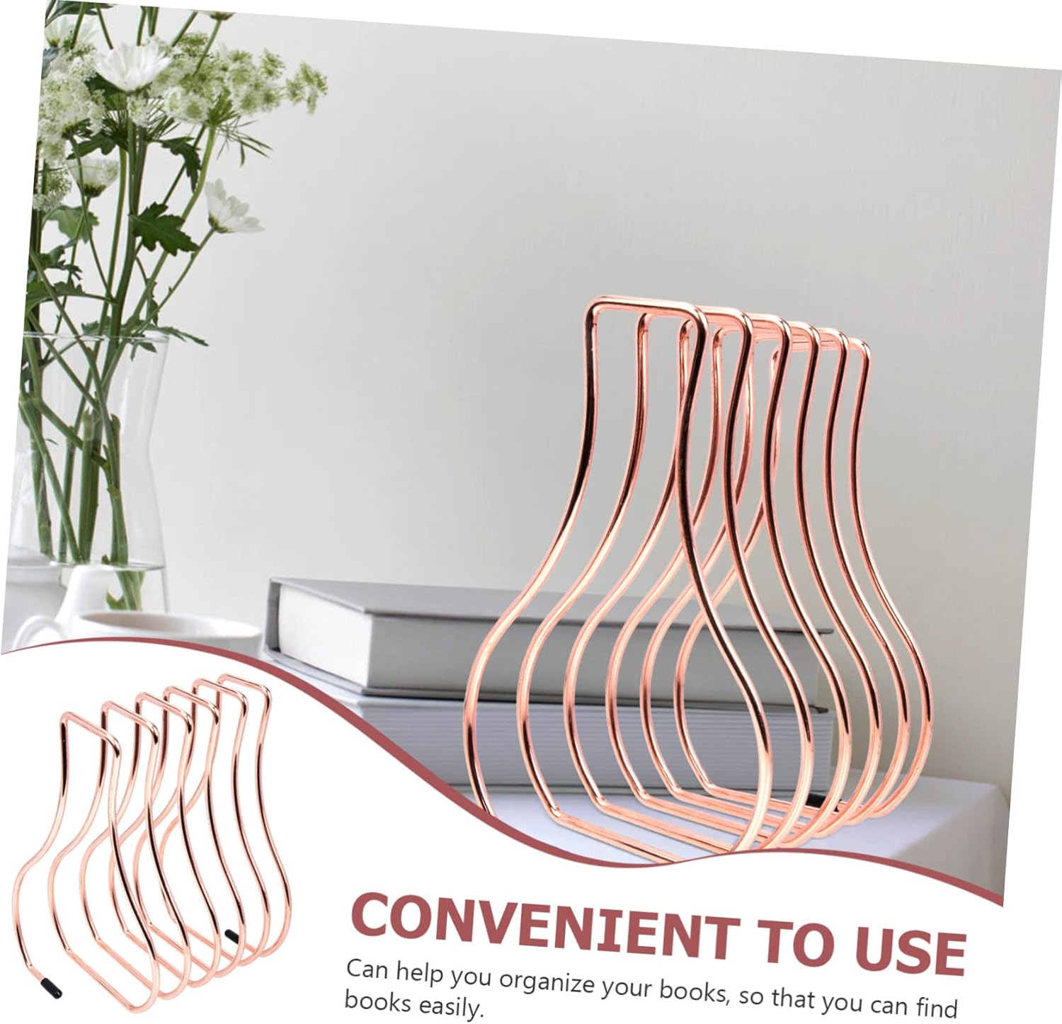 SEWACC Bookend Wear-Resistant Book Organizer Home Accessory Folders for Binders Decorative Book End Nordic Style Book Organizer Book Stand Decorative Book Holder Rose Gold Wrought Iron
