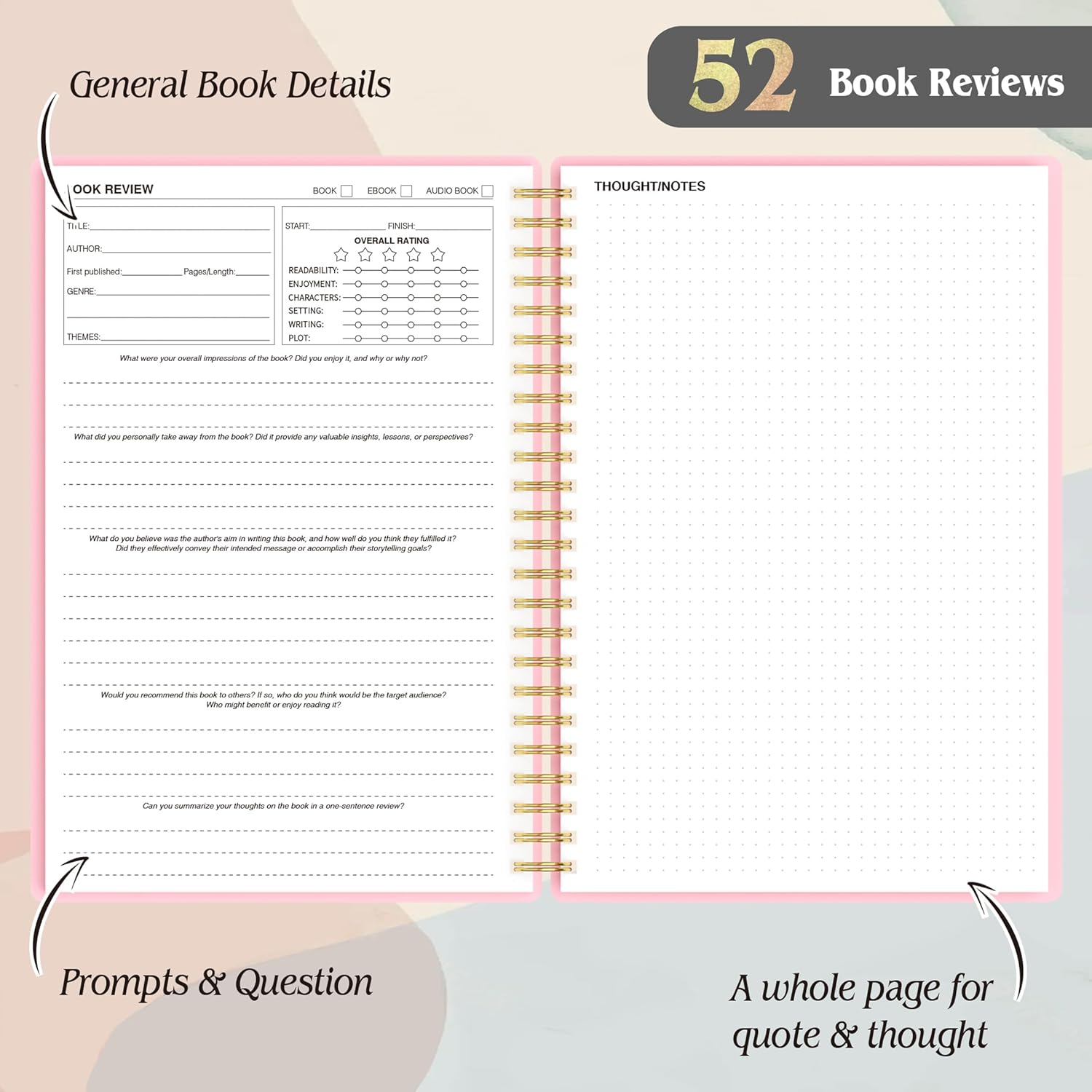 Thoughtful Multifunctional Design – With space for up to 52 book reviews, there’s ample room to capture ideas and quotes, guided by a series of probing questions to prompt deeper reflection on your reading. It also provides reading challenges to motivate you towards achieving your reading goals.