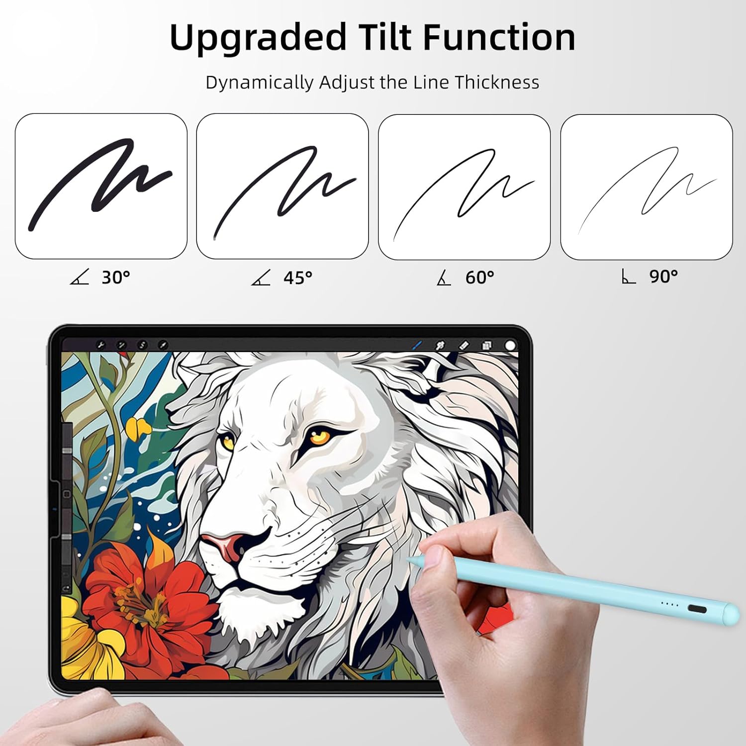 WIDELY USED: The stylus is highly sensitive, you can use the stylus to browse the internet, take notes, paint watercolors, draw sketches, or mark up documents for all your office or study needs. In some apps, the tilt and thicken function allows you to draw strokes of different thickness and depth by changing the tilt of the pen tip.