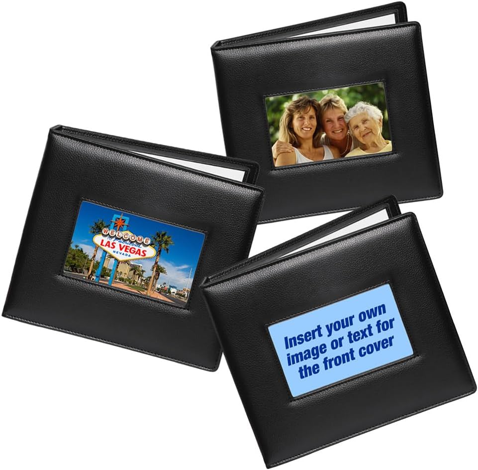 Insert a 6×4″ Photo into the Front Cover. Each of the 30 pages will hold a single 5×7″, (13x18cm) photo.