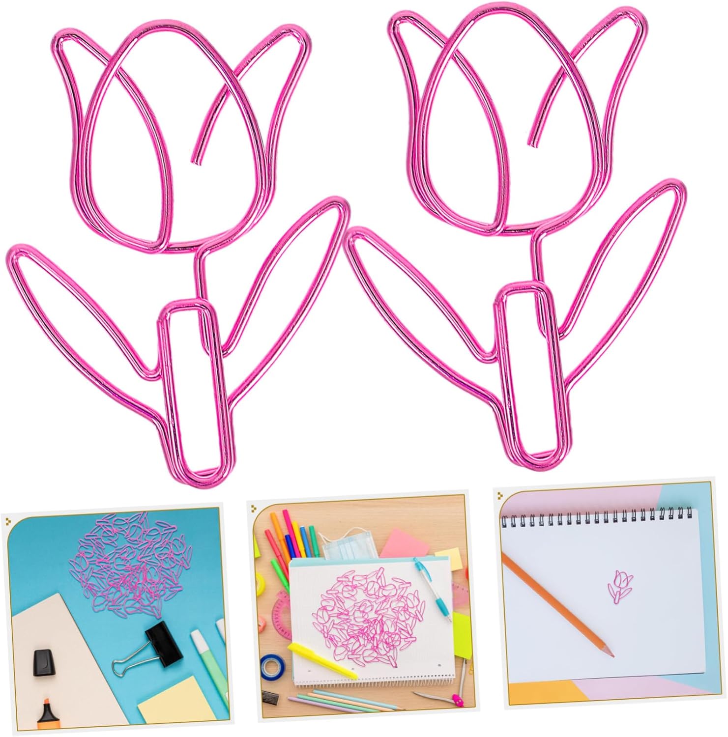 TEHAUX 20pcs Cute Paper Clips Novelty Tulip Shaped Paperclips Cartoon Tulip Paper Clips Bookmarks Clips Funny Cute Paper Clips Tulip Paper Clips