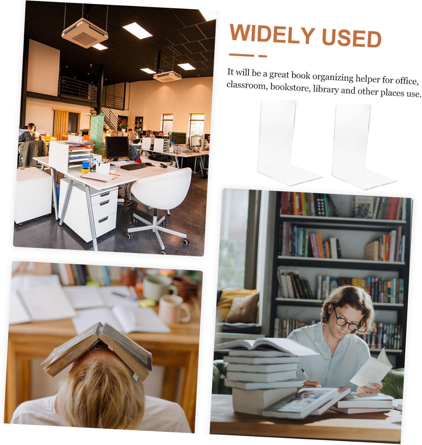 TEHAUX 4pcs Transparent Bookends Bookshelf File Book Ends Reading Book Stands Office Accessories Reading Book Organizer Exquisite Book Holders Convenient Book Stands Acrylic