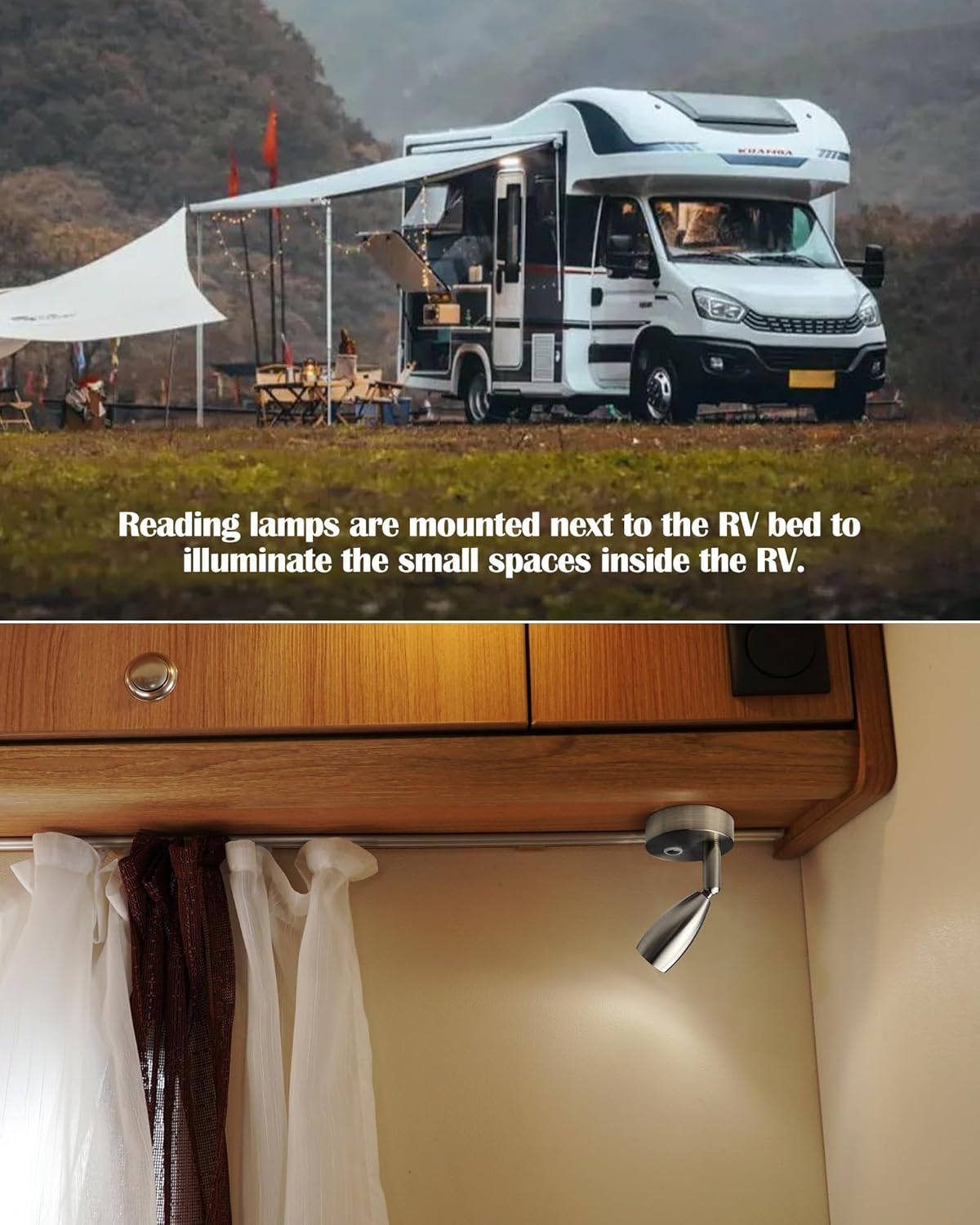 Only a 2.56-inch diameter base of 12V reading light for RV interior is compact and doesn’t take up much space.
