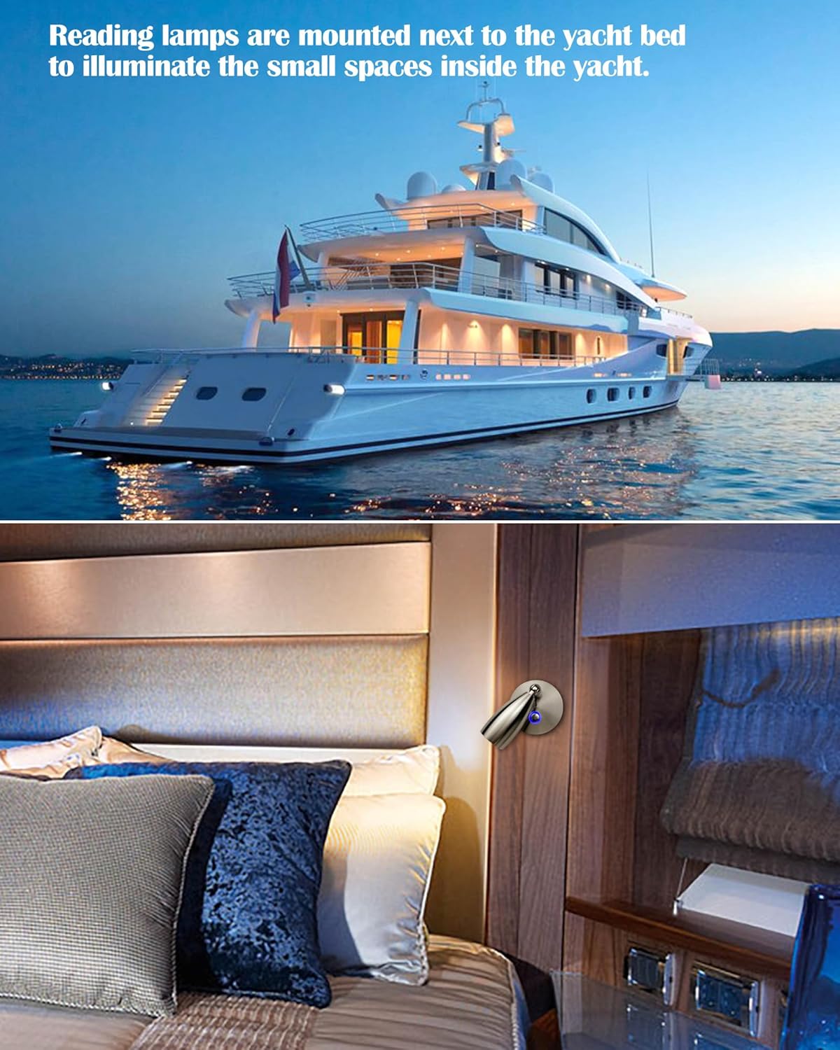 The 10-30V low-voltage induction dimmable reading light is suitable for installation in cabinets or closets or walls in dry environments such as bedrooms and guest rooms in all types of RVs and yachts.
