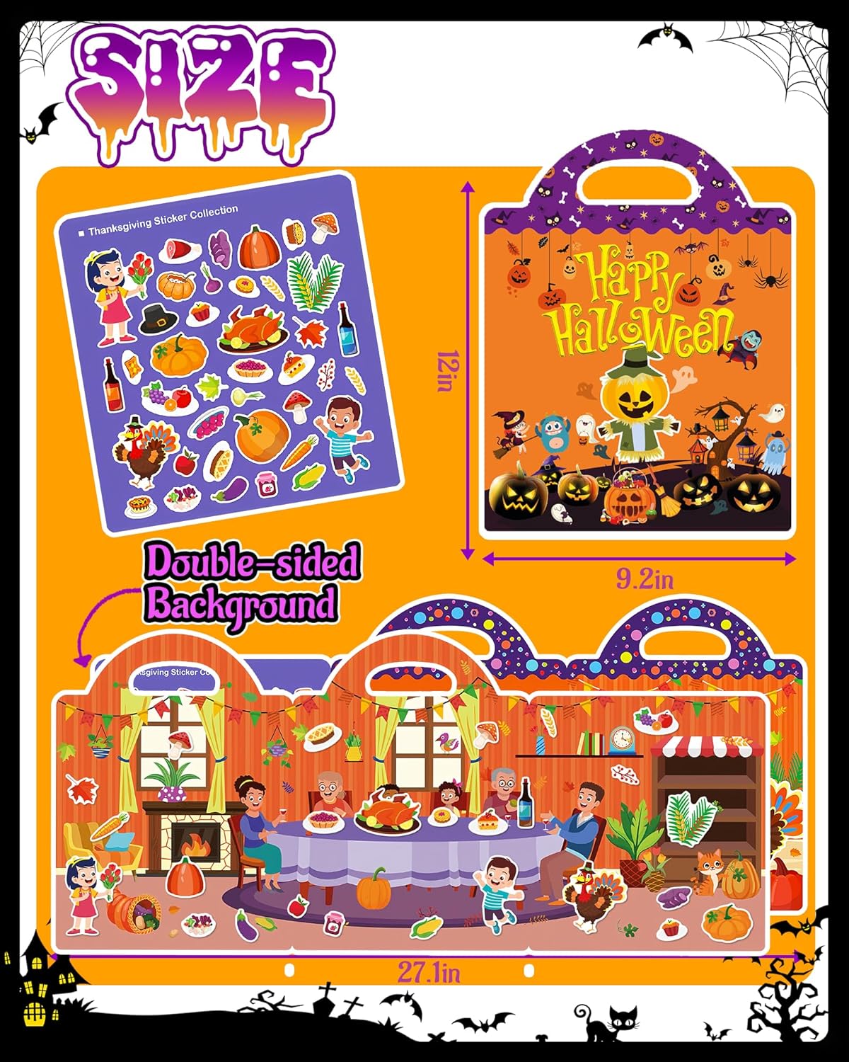 Thanksgiving Sticker Books for Kids, Thanksgiving Gifts Reusable Sticker Books for Toddlers 1-3, 2-4, Thanksgiving Travel Toys Acticities Crafts Birthday Gifts for Boys Girls Kids