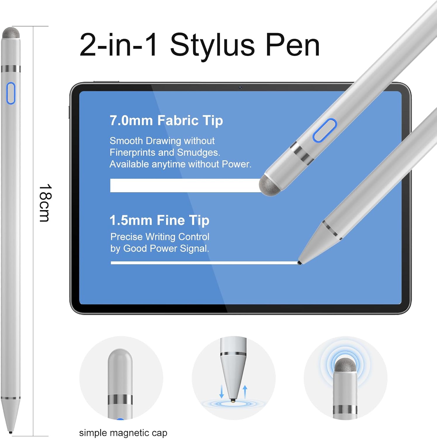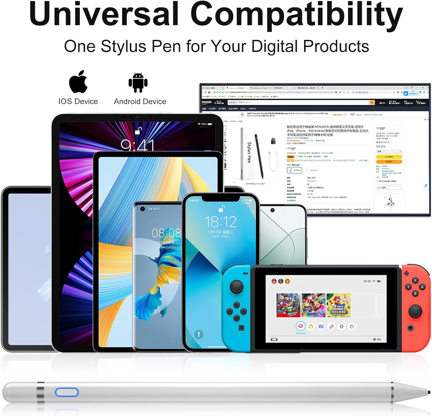 Universal Stylus Pen Compatible for iOS&Android Touch Screen, Pencil with Dual Touch Function,Rechargeable Stylus for iPad/iPad Pro/Air/Mini/iPhone/Cellphone/Samsung/Tablet Drawing&Writing (White)