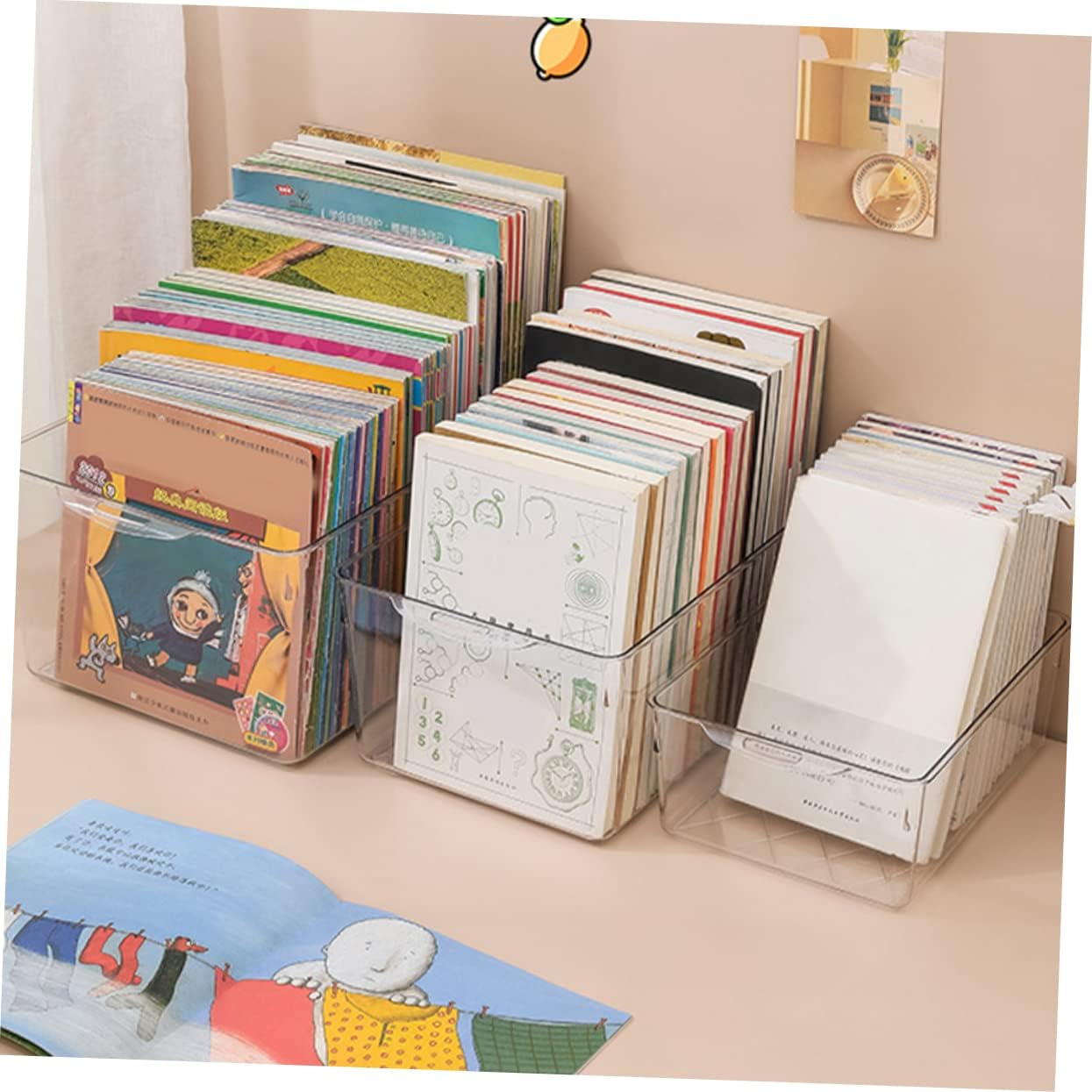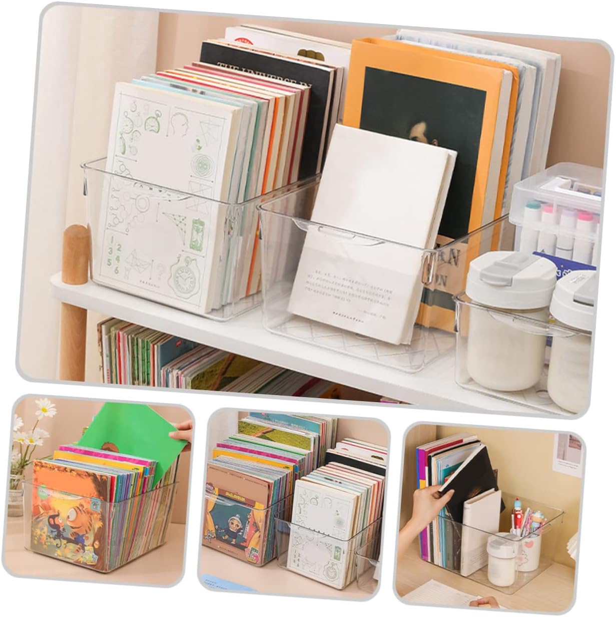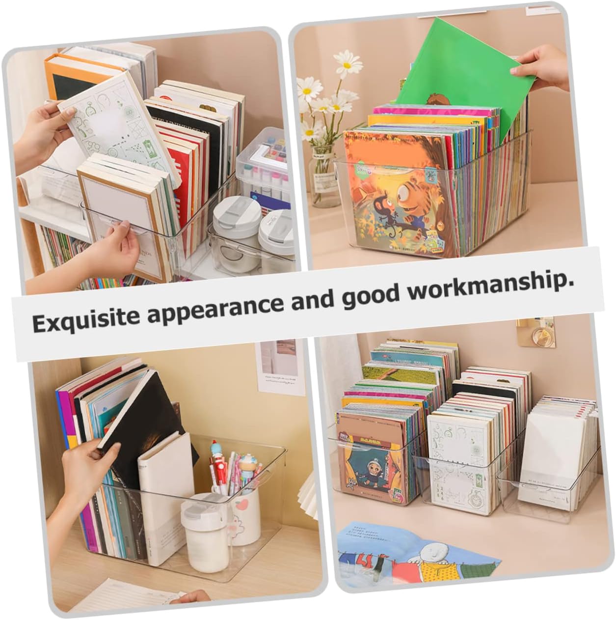 Unomor 2pcs Clear Desktop Book Storage Box Transparent Brochure Organizer Countertop Storage Containers for Books and Stationery and Sizes Included