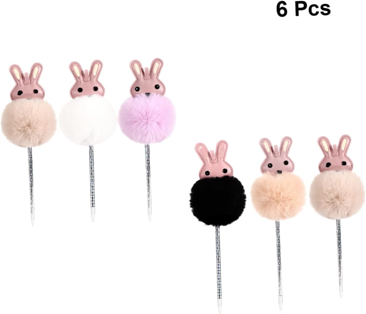 Uonlytech 6Pcs Rabbit Gel Pen Plush Ball Gel Pens for Cute Cartoon Writing Pens Mixed Colors Fluffy Bunny Design for School Office and Home Use