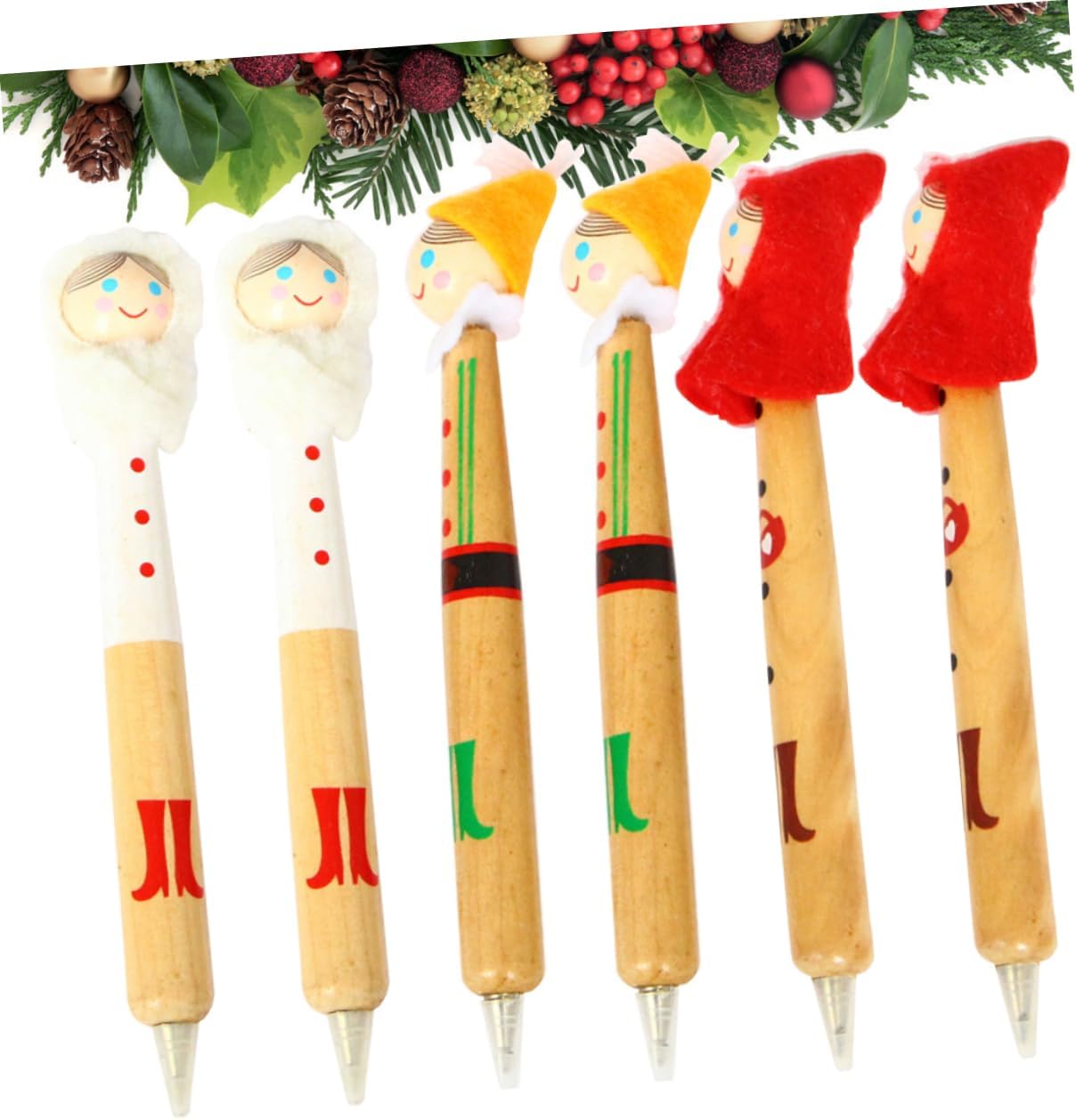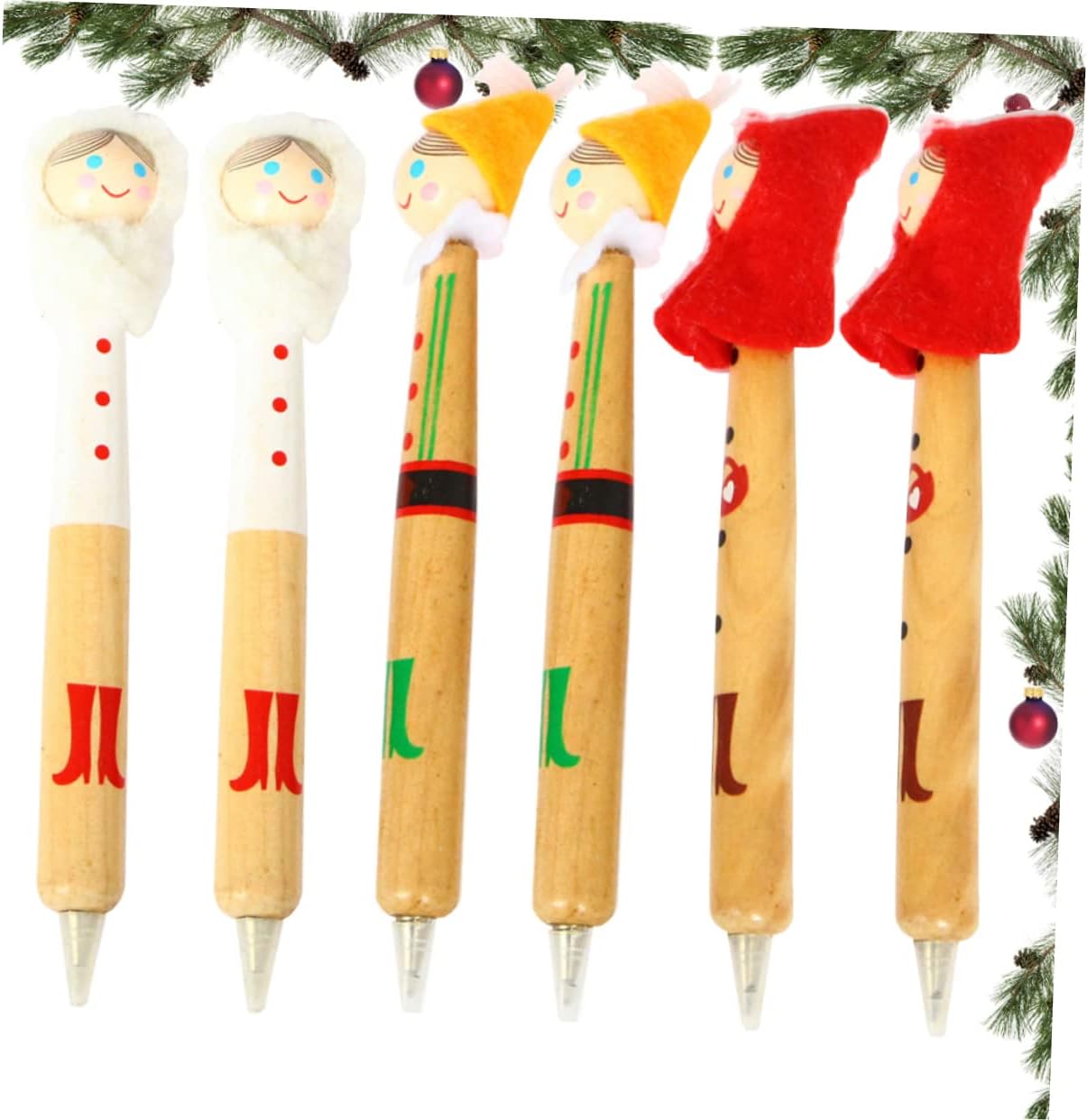 Uonlytech 6Pcs Wooden Christmas Ballpoint Pens Adorable Writing Pens for Creative Holiday Stationery Present for School and Festive Celebrations