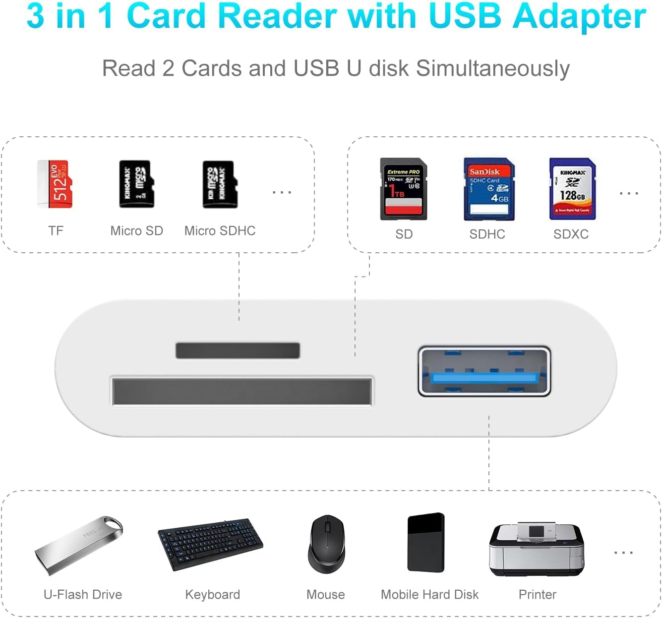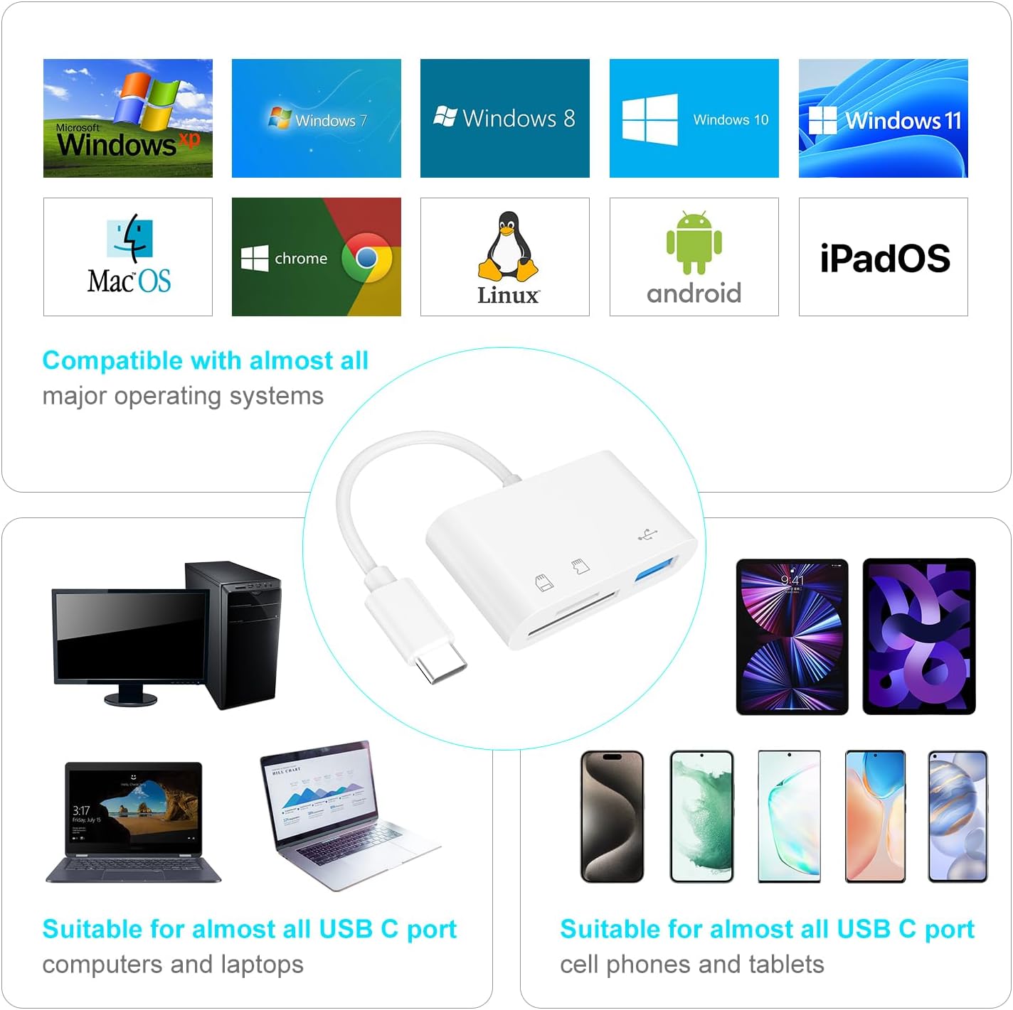 USB C to Micro SD TF Memory Card Reader, 3-in-1 USB Camera Card Reader Adapter for iPhone 15,for iPad Pro, for MacBook Pro/Air, for Chromebook XPS,for Galaxy S10/S9 and More USB C Device
