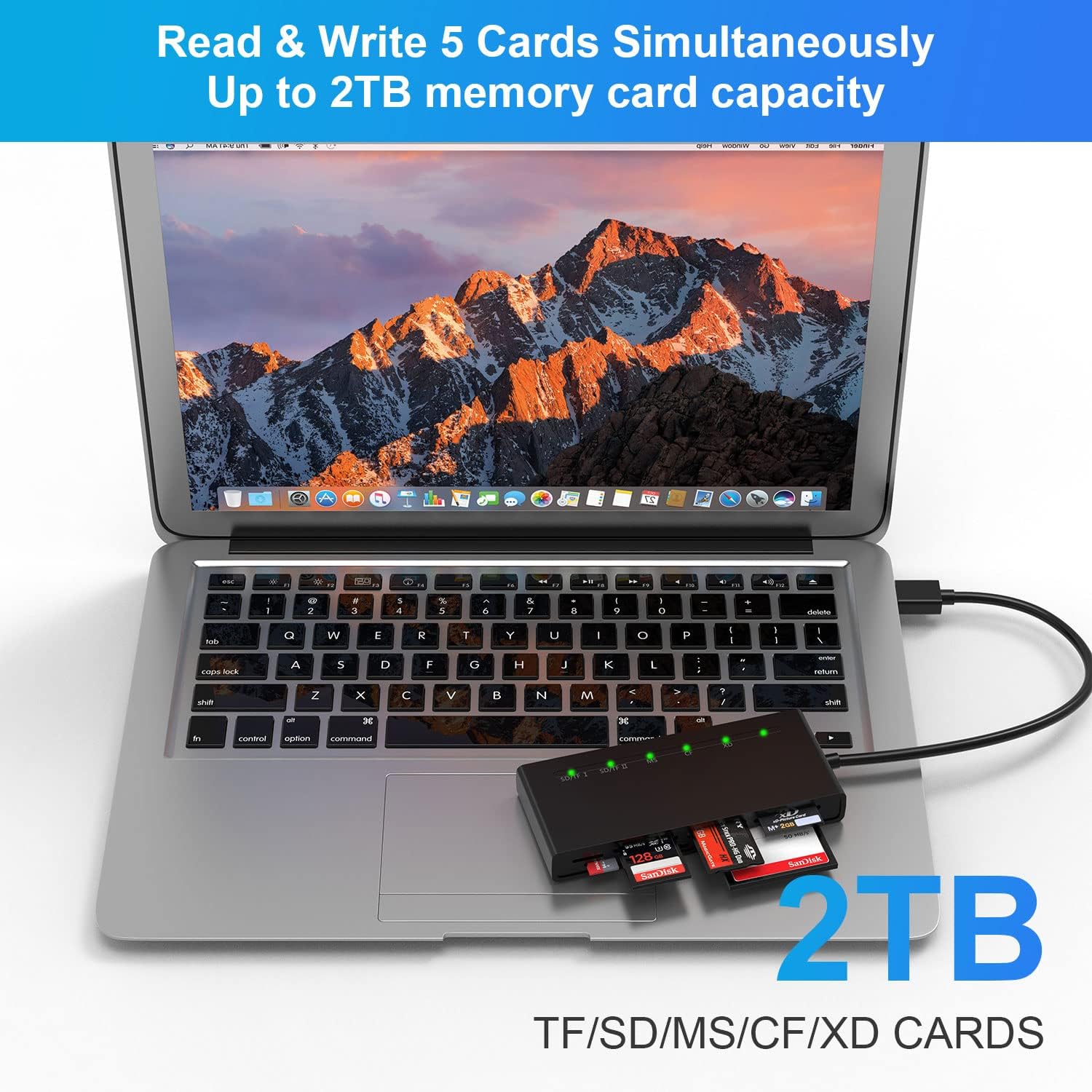 USB3.0 Multi SD Card Reader, SD/TF/Micro SD/CF/MS/XD 7-in-1 5Gbps High Speed Memory Card Reader for SDXC SDHC TF Micro SD CF MS MMC Card, Sony Memory Stick Pro Duo Adapter Read 5 Cards Simultaneously