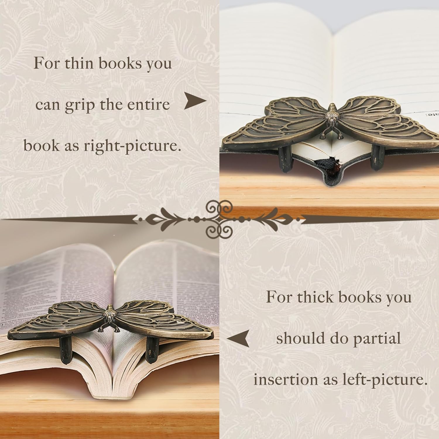 【Premium Brass Construction】The book opener holder crafted from high-grade brass, this butterfly book accessory combines a distinct vintage aesthetic with outstanding durability and corrosion resistance. The brass not only elevates its overall feel but also ensures long-lasting use, making it a perfect choice for avid readers and collectors alike.
