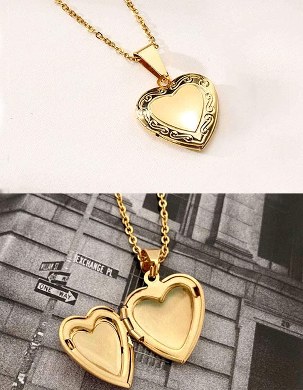 Womens Locket Necklace 18K Gold Photo Necklace Heart Necklace Gold Locket Necklaces for Women