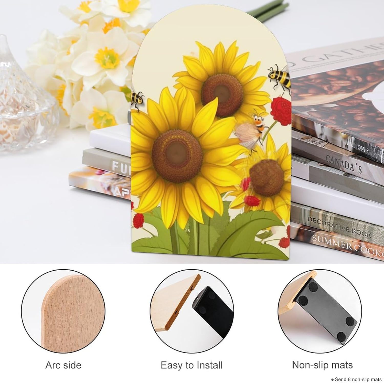 Be the first to review “Wood Bookends Decorative Bookshelf Bees Sunflowers Daisy Rose Flowers Heavy Duty Wooden Book Shelf Decorate Bookshelves Book Stopper Book Holders Desk Accessories”