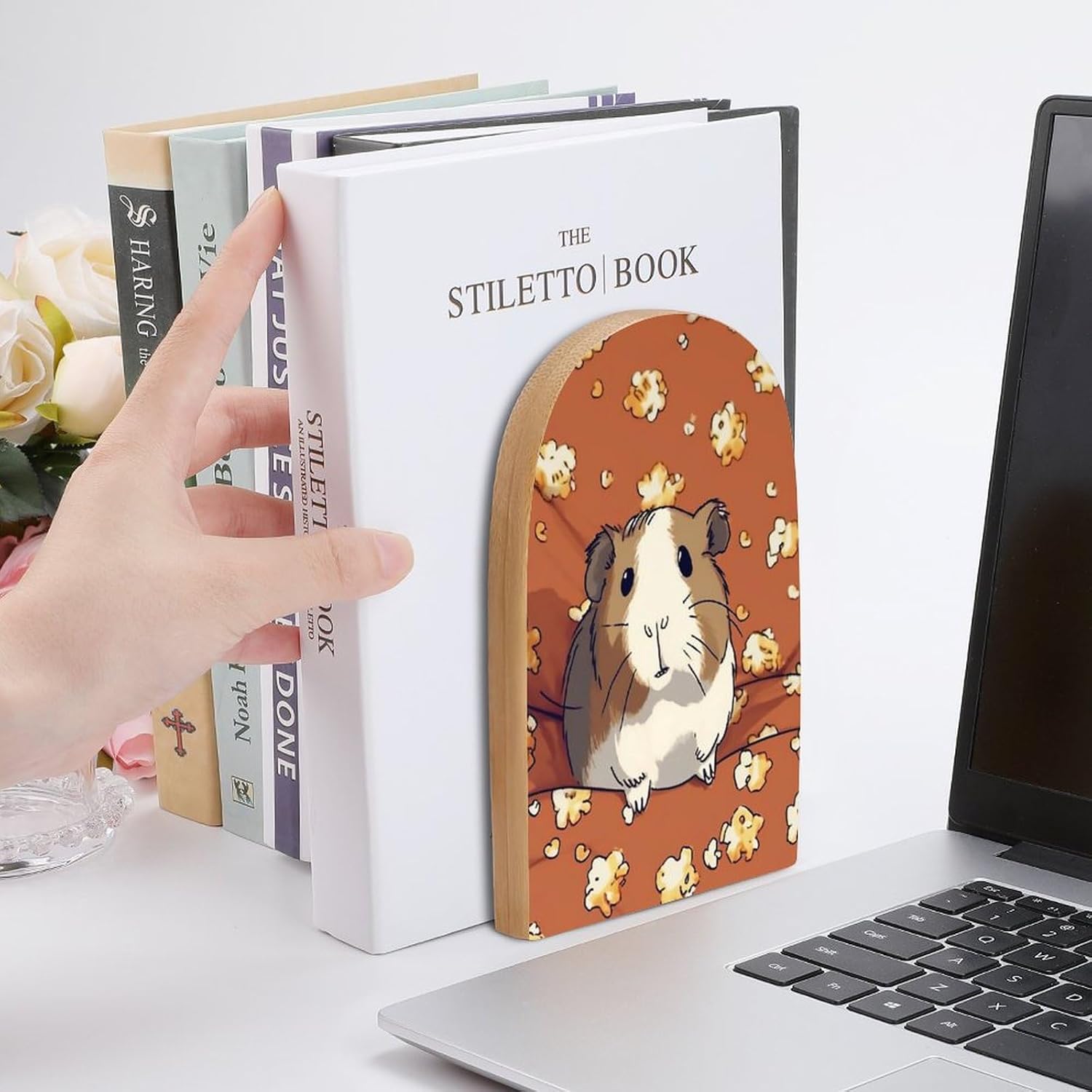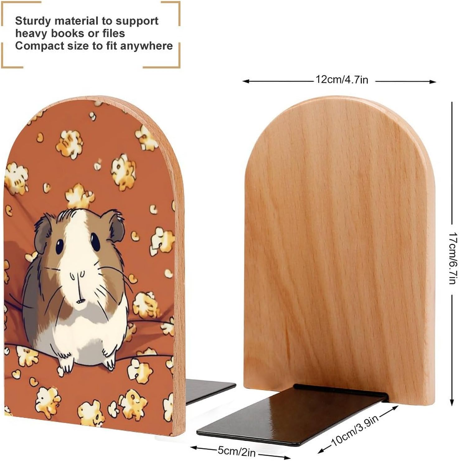Wood Bookends Decorative Bookshelf Guinea Pig and Popcorn Heavy Duty Wooden Book Shelf Decorate Bookshelves Book Stopper Book Holders Desk Accessories