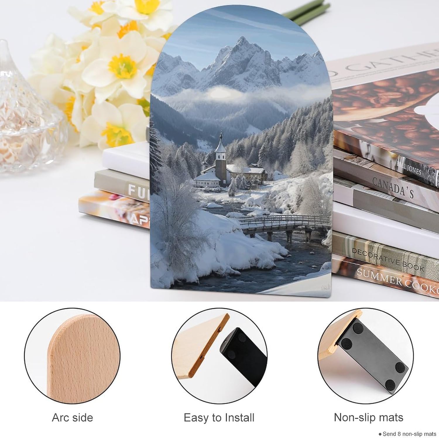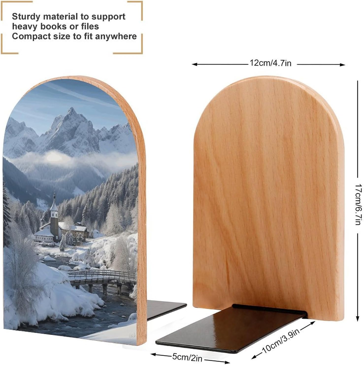 Be the first to review “Wood Bookends Decorative Bookshelf Winter Landscape in The Bavarian Alps Heavy Duty Wooden Book Shelf Decorate Bookshelves Book Stopper Book Holders Desk Accessories”
