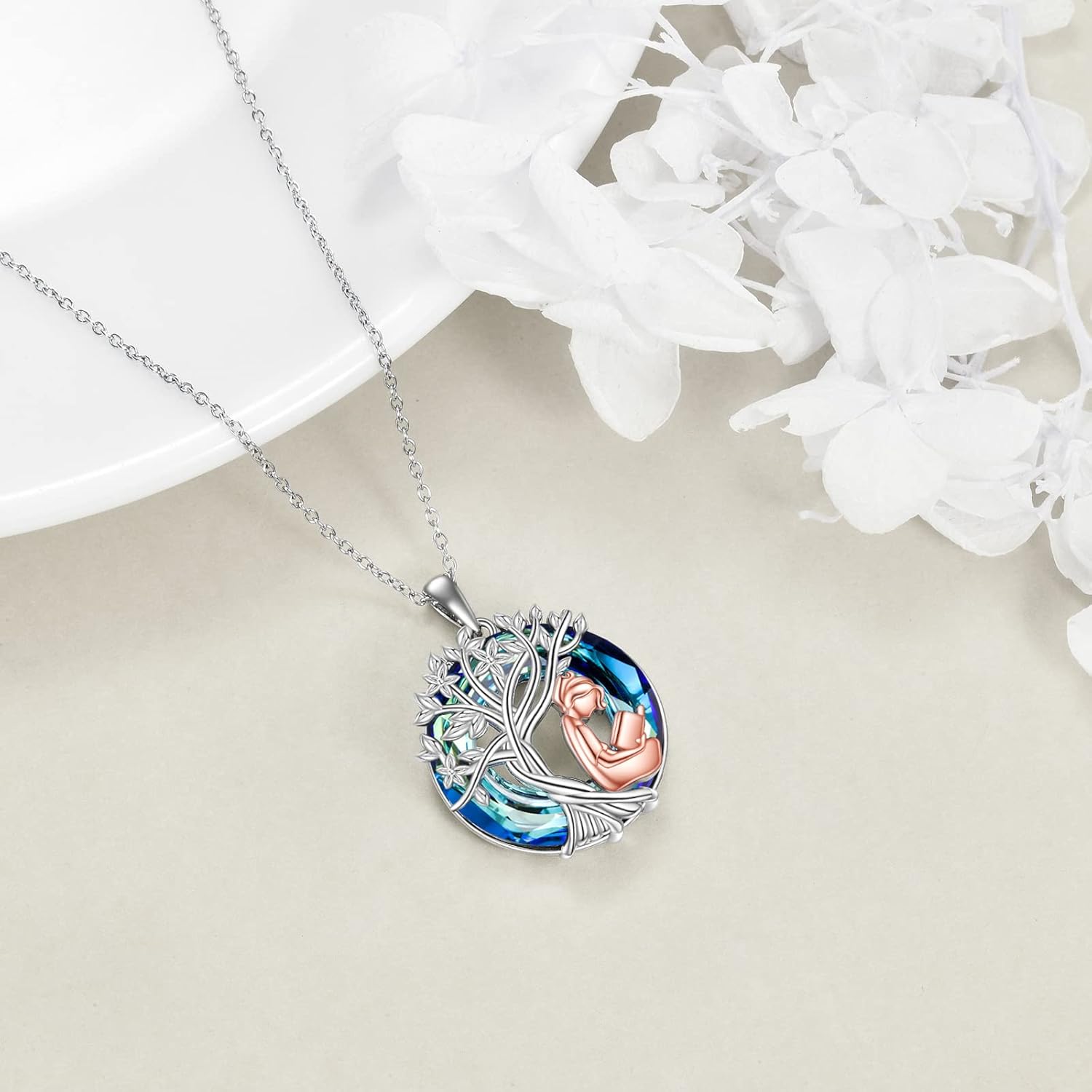 YFN Tree of Life Necklace Sterling Silver Crystal Jewelry Graduation Birthday Gifts for Women