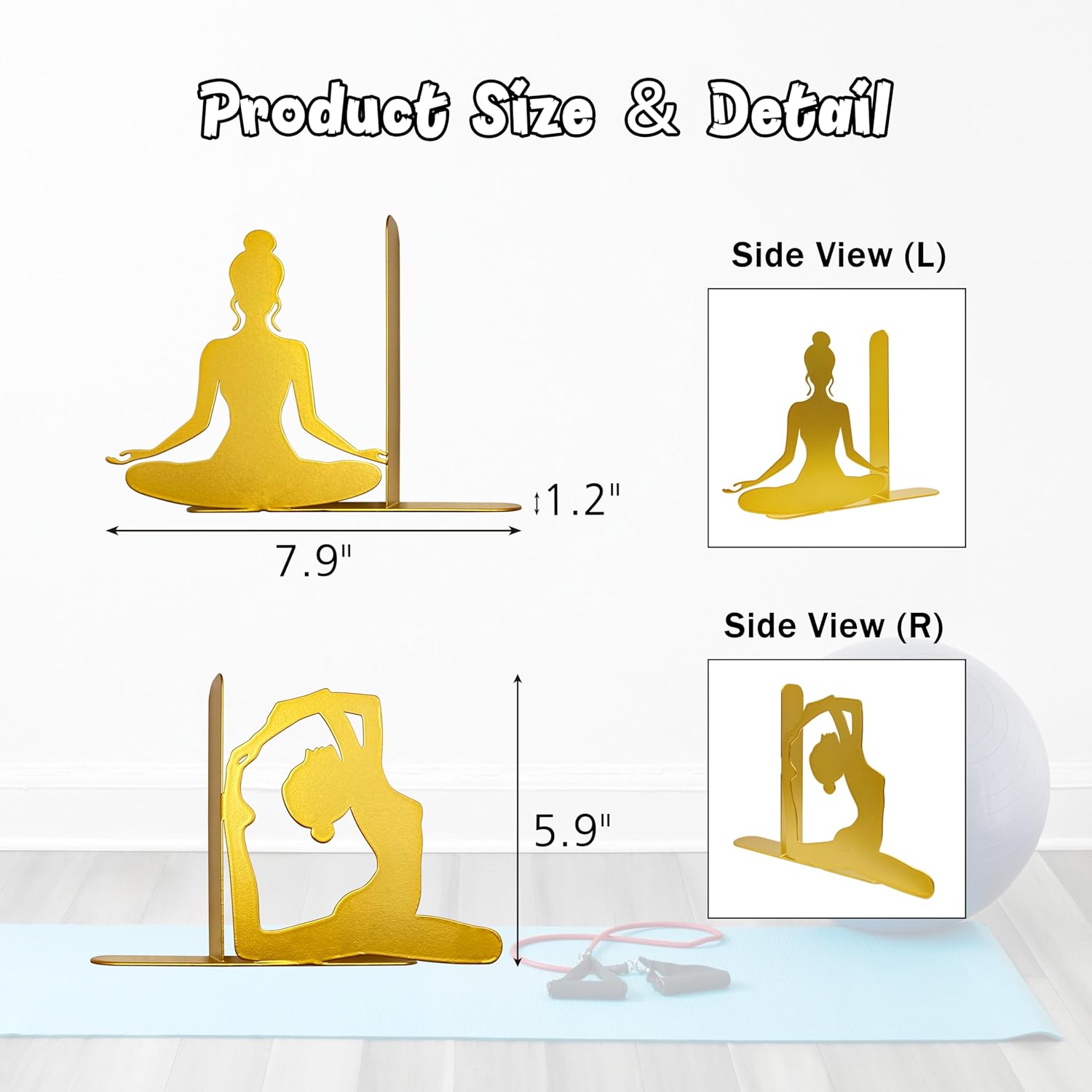 Bring home the peace of yoga and elegance of gold decor with our Yoga-Inspired Decorative Bookends today!S P E C I F I C A T I O N S: