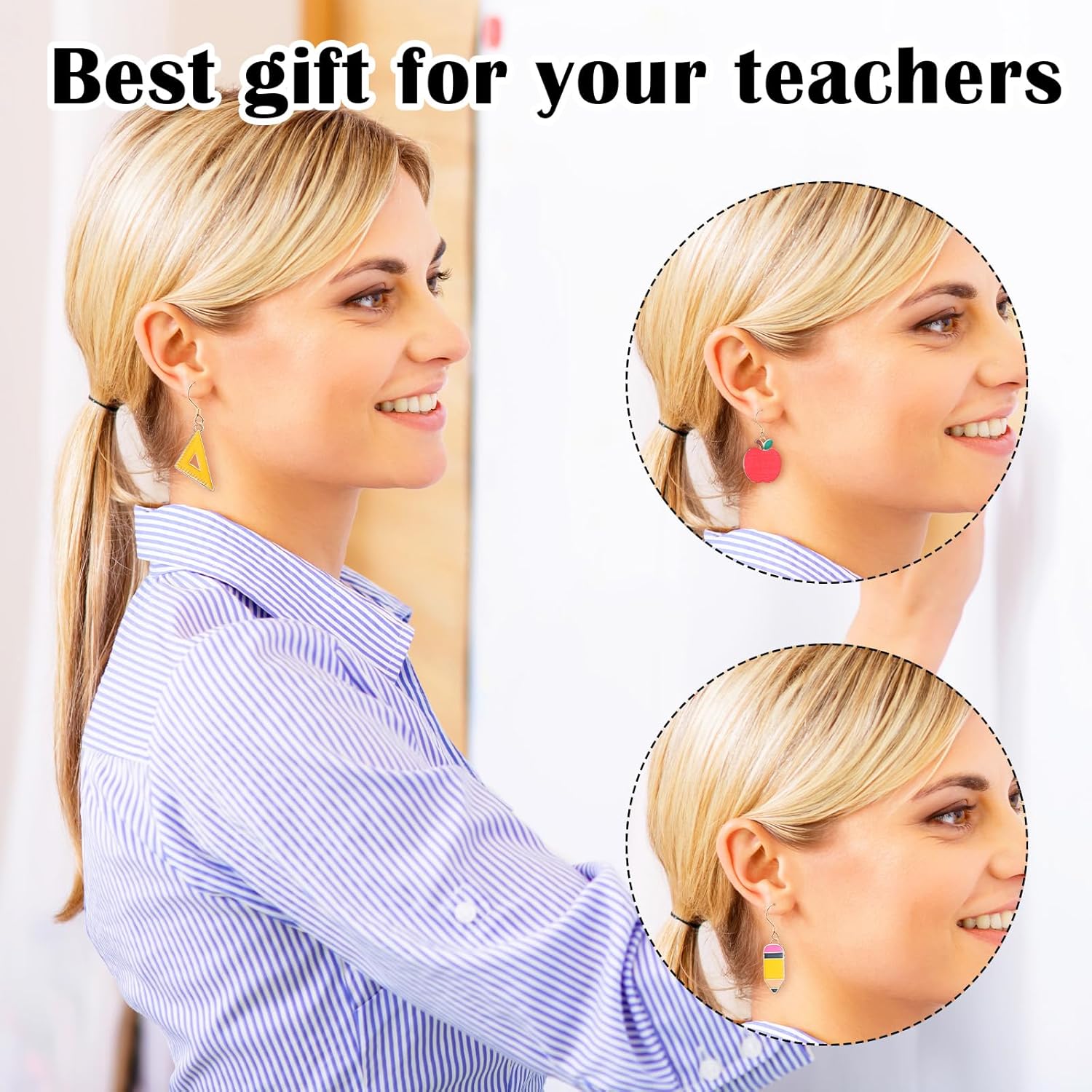 Yunlly 36 Pairs Teacher Earrings for Women Cute Book Pencil Ruler Apple Stud Dangle Earrings Back to School Teacher Gifts