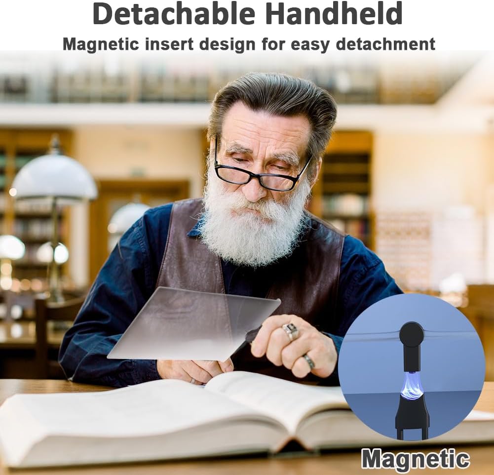 🔍︎DETACHABLE – zxbaers large magnifying glasses can be hung around the neck, placed on the table or detached for handheld use, 5x HD magnification without distortion to meet the various needs of daily life.