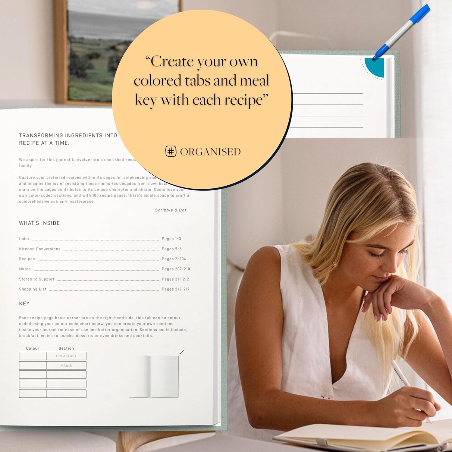 Scribble & Dot® Recipe Book To Write In Your Own Recipes | Create Your Own Cookbook Journal | Hardback Premium Recipe Journal | Keepsake Recipe Notebook| Food Diary DIY Colour Tabs | AirFryer Conversions | 100 Recipes!